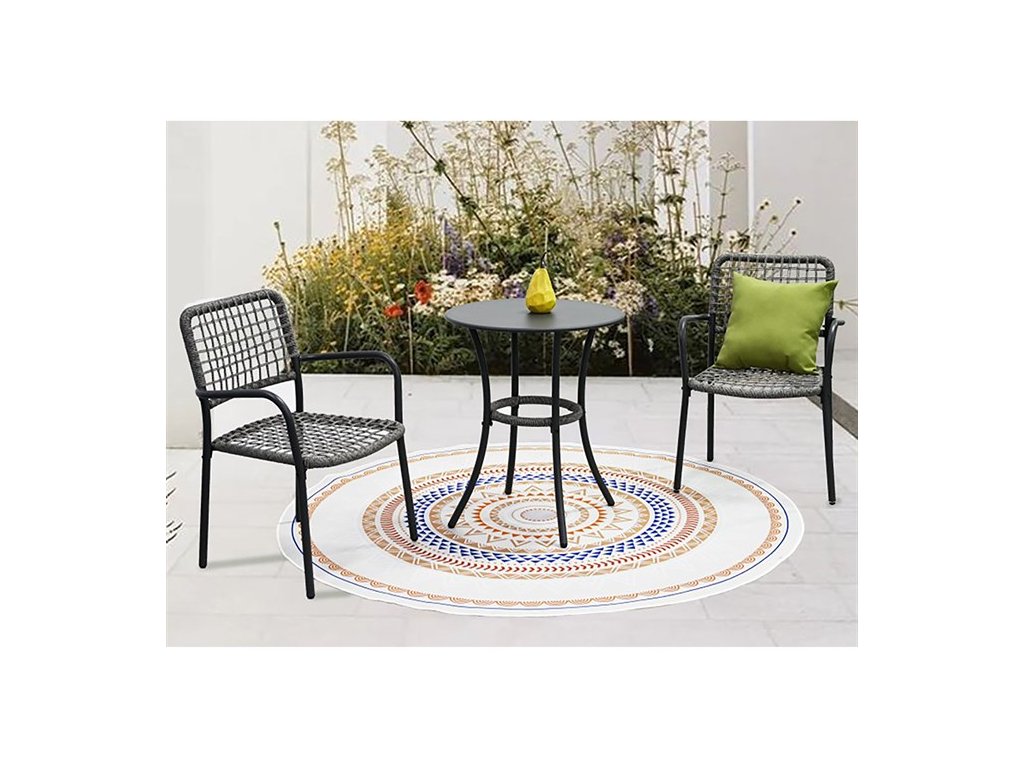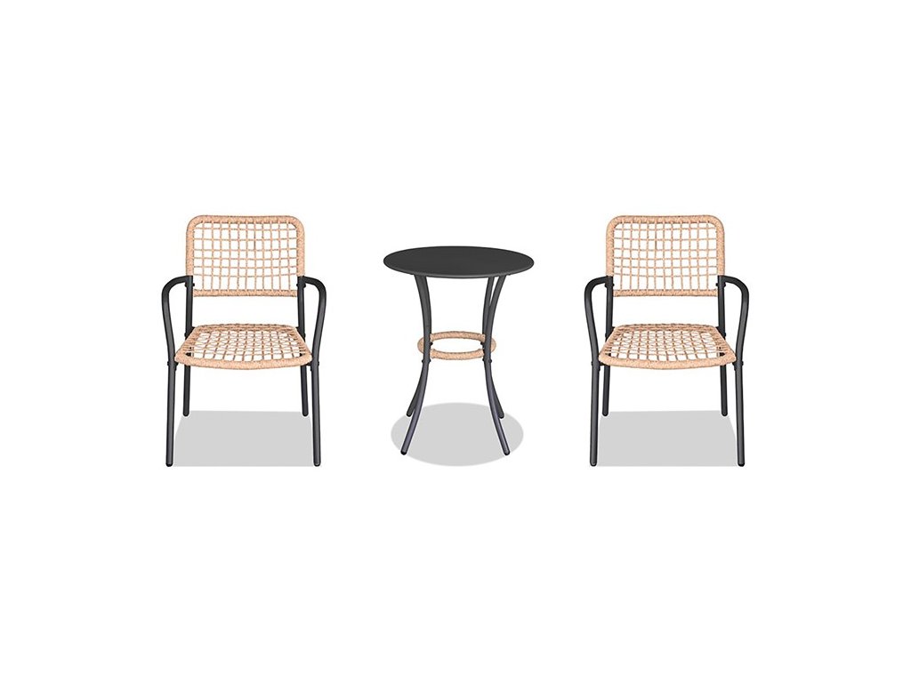 Deska i nohy stolku jsou vyrobeny z kovu, což zaručuje dlouhou životnost, průměr desky stolku je 60 cm. Moderní design tohoto setu se skvěle hodí do každého venkovního prostoru a je snadno udržovatelný. Perfektní řešení pro malý i větší venkovní prostor.