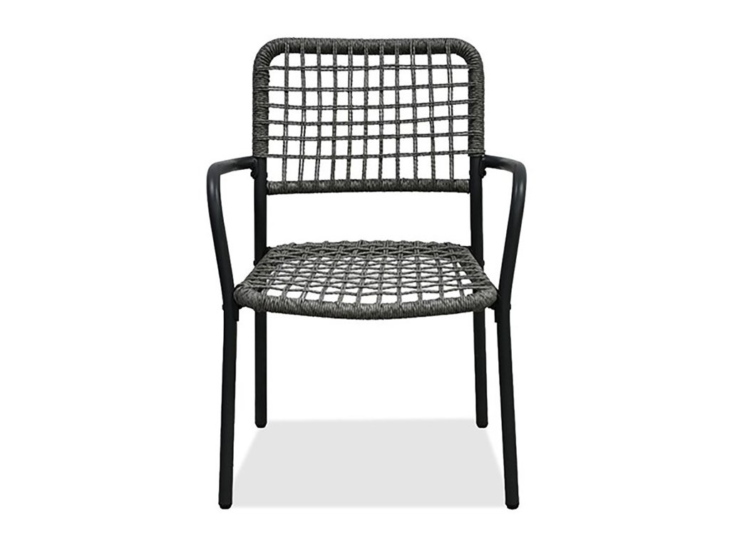 Židle jsou vyrobeny z pevného polyratanu a mají stabilní kovovou konstrukci s práškovou povrchovou úpravou v antracitové barvě, která zajišťuje odolnost vůči venkovním vlivům.