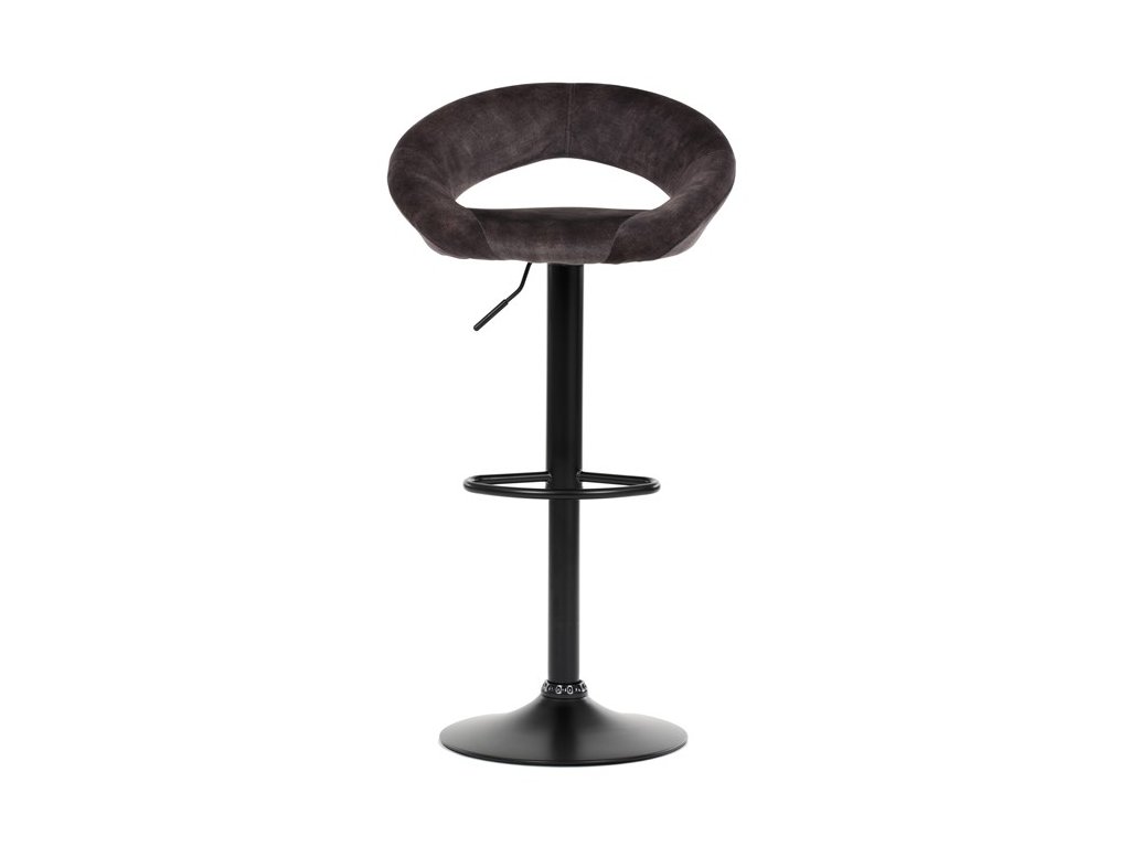 Elegantní barová židle AUB-822 se vyznačuje výrazným industriálním stylem a má odolnou kovovou konstrukci spojenou s matným sametovým čalouněním. Tento potah jí dodává moderní vzhled, zatímco středová základna propůjčuje židli stabilitu a zvyšuje funkčnost jídelního prostoru.