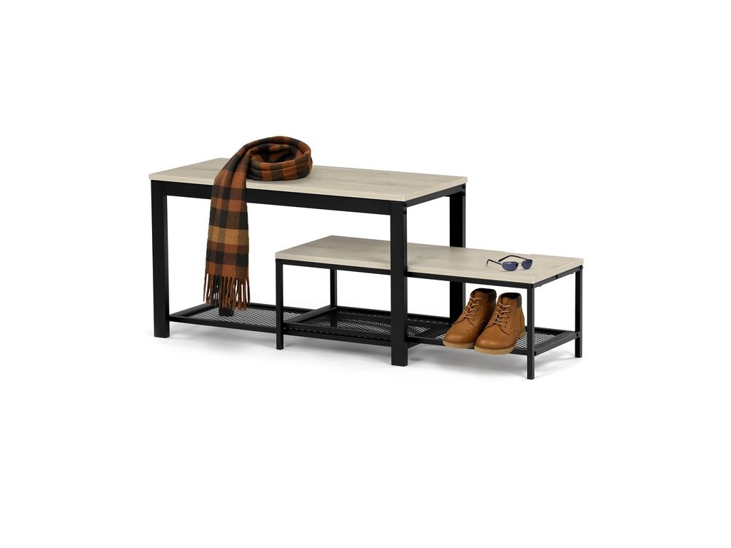 Botník ABO-W2124 v dekoru starého dřeva nebo dubu sonoma je praktickým a stylovým doplňkem pro vaši předsíň. Díky kombinaci kovového rámu a dřevěných desek nabízí dostatek úložného prostoru pro vaše boty, zatímco pevná konstrukce zajišťuje stabilitu. Díky svému jednoduchému, ale funkčnímu designu se skvěle hodí do moderně zařízených interiérů. Rozměr menšího botníku je 78 x 30,5 x 27 cm.