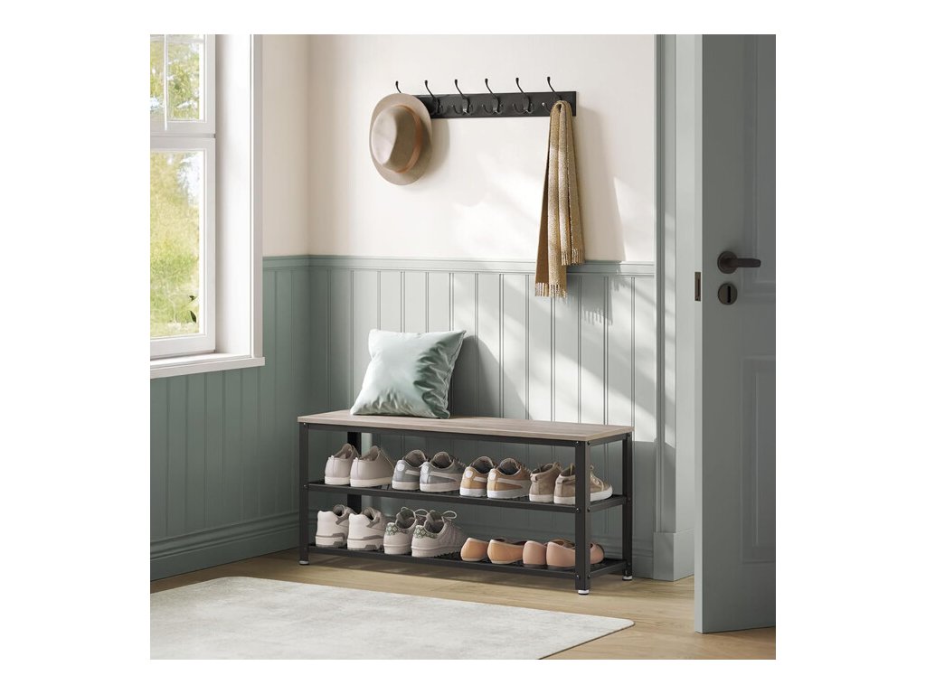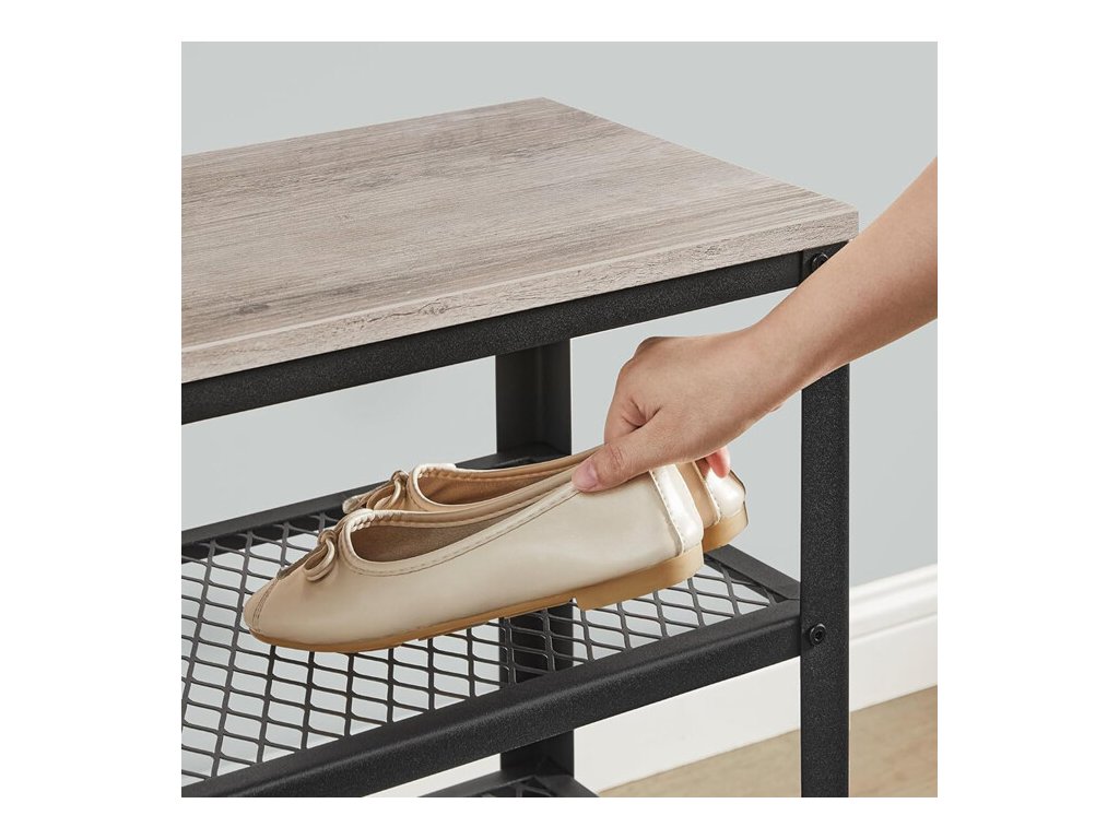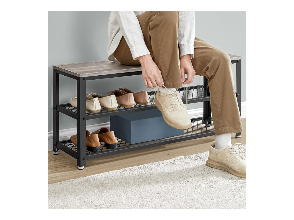 Botník ABO-E1078 v šedém provedení kombinuje desku z MDF s pevnou ocelovou podnoží a dvěma mřížkovými policemi, které poskytují praktický úložný prostor pro obuv. Deska je hladká s jemnou strukturou, která usnadňuje údržbu a odolává běžnému opotřebení. Ocelová konstrukce je opatřena práškovým lakem, což zajišťuje stabilitu a dlouhou životnost botníku. Díky rozměrům 100 × 30 × 45 cm se botník hodí do předsíní i menších prostor, kde efektivně využívá dostupné místo. Nastavitelné plastové patky chrání podlahu před poškozením a zajišťují rovnoměrnou stabilitu.