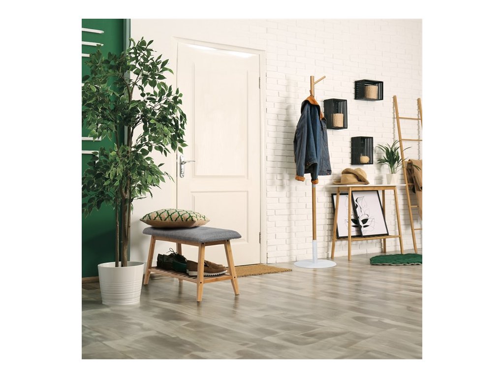 Tento elegantní botník DR-N1012 GREY2 v přírodní barvě je perfektním doplňkem do vaší předsíně. Vyroben z masivního bambusu a vybaven šedou polstrovanou sedací plochou, poskytuje nejen komfort při obouvání, ale také praktický úložný prostor pro vaši obuv. Nosnost sedáku je 70 kg. Skandinávský styl tohoto botníku dodá vašemu interiéru moderní a příjemný vzhled.