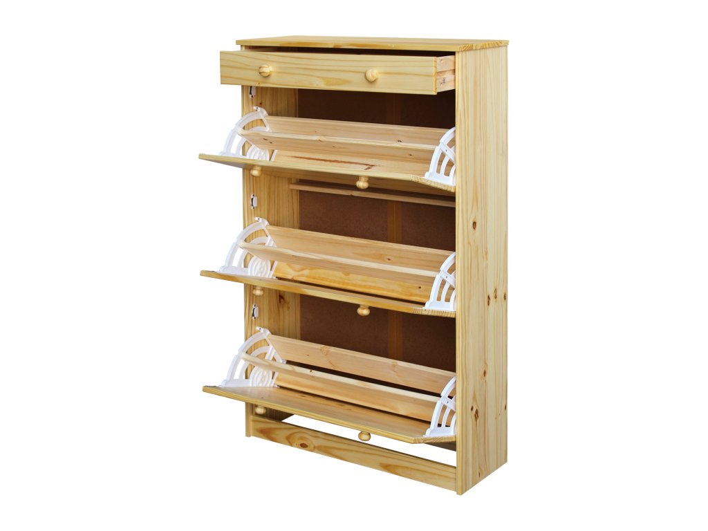 Botník 8833 z masivní borovice je ideálním řešením pro každého, kdo si potrpí na pořádek i estetiku hned u vstupu do domova. Rozházená obuv v chodbě ztrácí svůj prostor – tento elegantní a praktický botník jí vrátí řád a přispěje k příjemné atmosféře vaší předsíně.Botník nabízí tři dvouřadé výklopy pro uložení většího množství bot a praktickou zásuvku, do které snadno uložíte klíče, drobnosti nebo třeba doplňky na obuv. Kvalitní provedení z masivního dřeva zaručuje dlouhou životnost a stabilitu, přičemž přírodní vzhled borovice působí vřele a domácky.