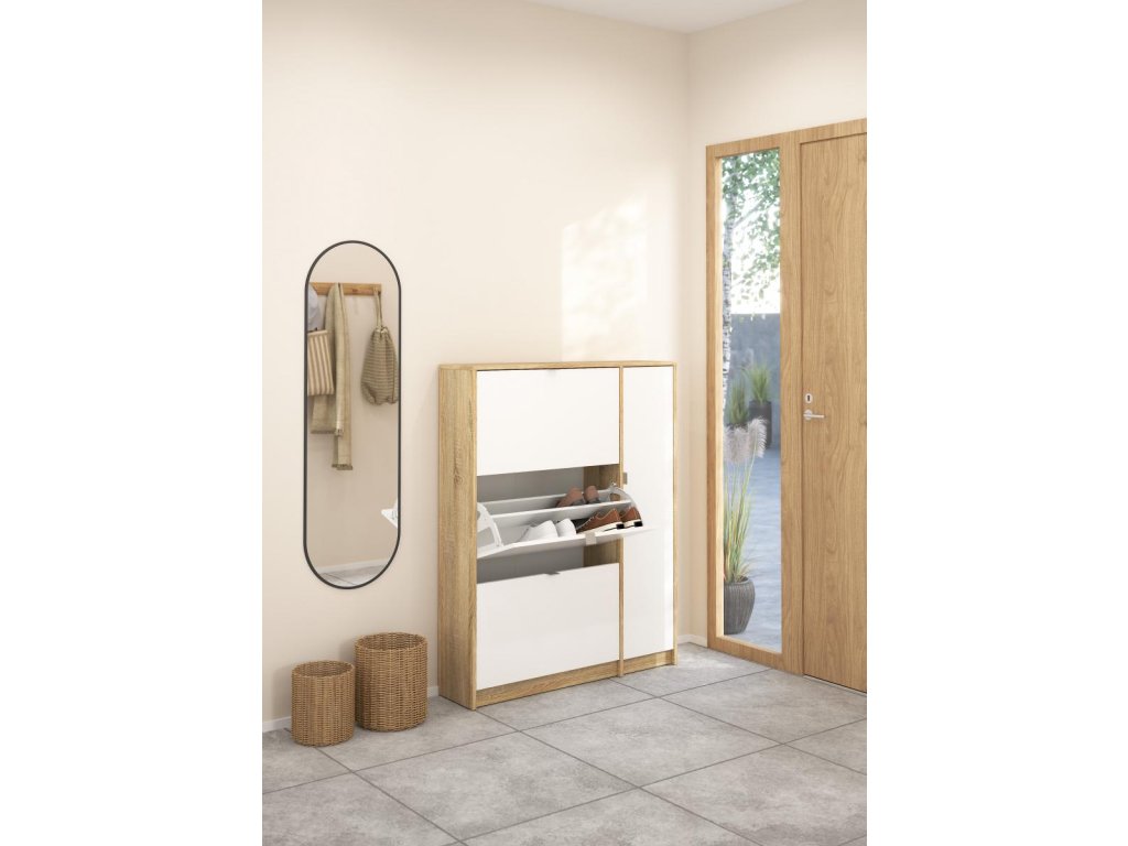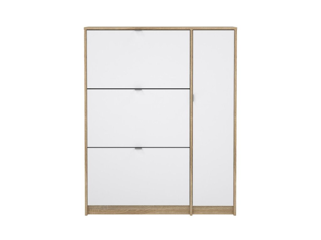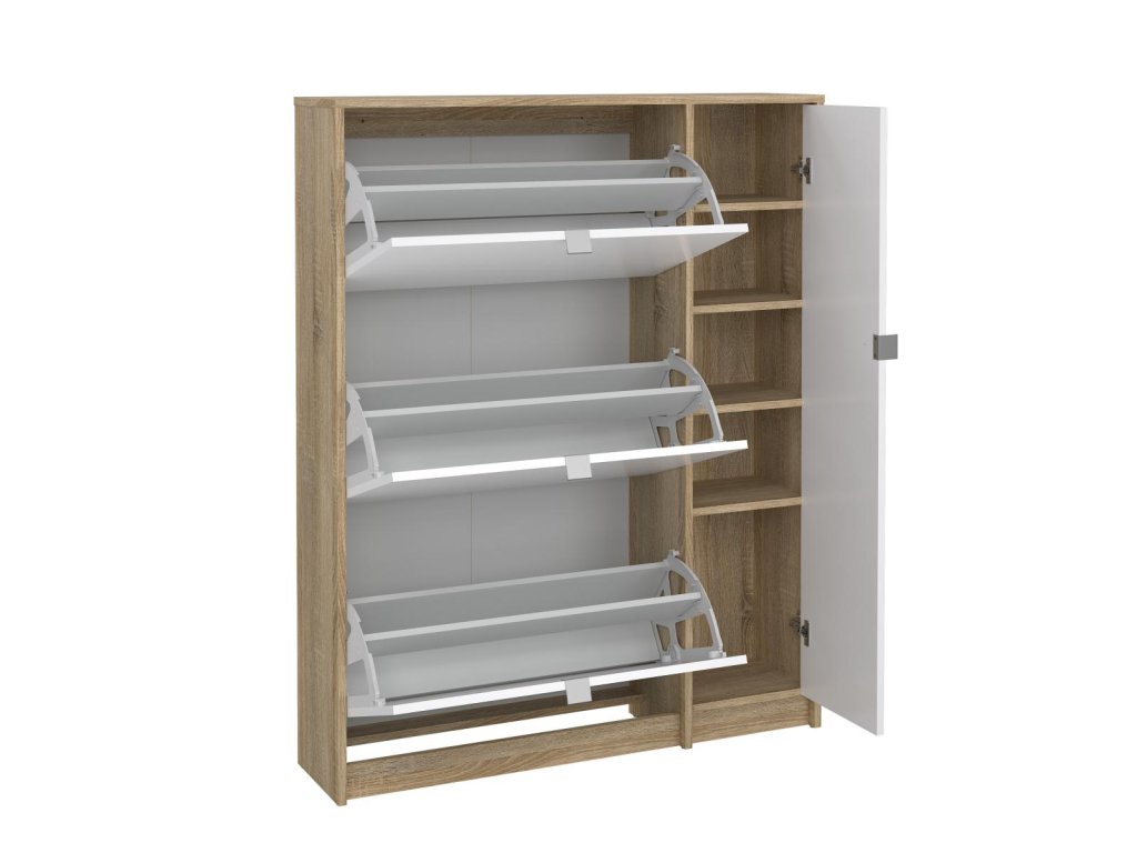 Botník Flap 008 3KL1D - po prostorném botníku touží každý milovník bot i početná rodina. Boty se hromadí v předsíni, vzniká chaos a zakopávání o boty je na denním pořádku. Zachraňte svou předsíň před nepořádkem a pořiďte si tento úžasný botník s výklopnými dvířky a skříňkou. Díky svému provedení pojme botník Flap opravdu velké množství bot. Do každé výklopné přihrádky můžete ukládat boty ve dvou řadách a skříňka poslouží např. k ukládání přípravků na čištění a údržbu bot, nebo k odložení drobných svršků jako jsou čepice, rukavice apod.