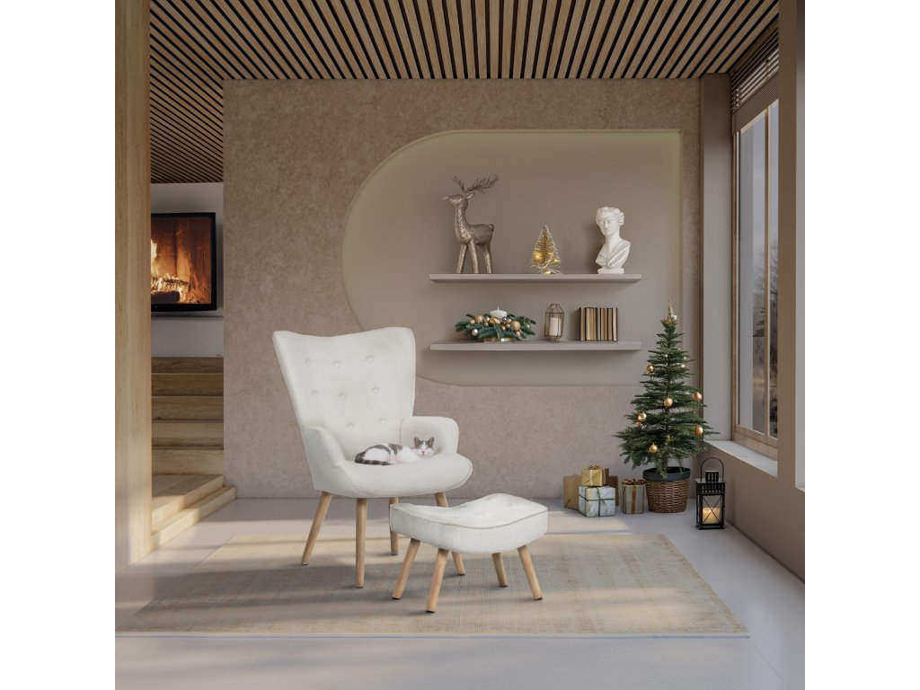 Křeslo AK-309 spojuje eleganci, pohodlí a funkčnost v kompaktním provedení. Je inspirováno švédským stylem, který vnáší do interiéru jemnou, útulnou atmosféru. Potah z jemné látky typu bouclé působí luxusně a příjemně na dotek.