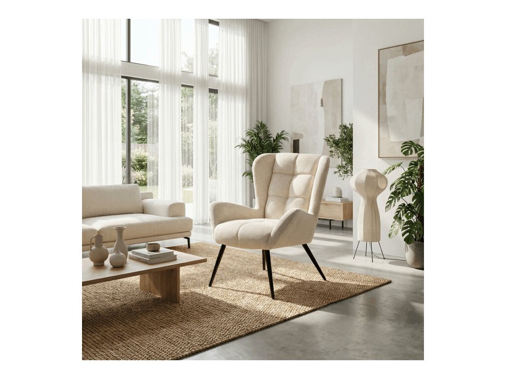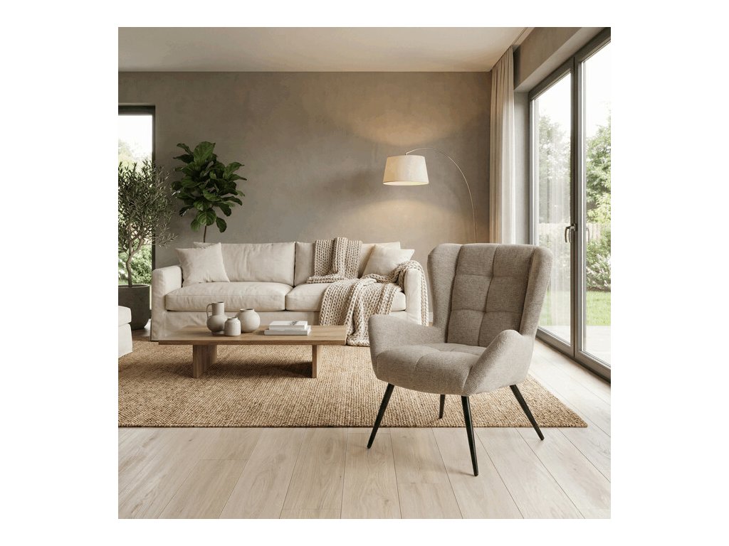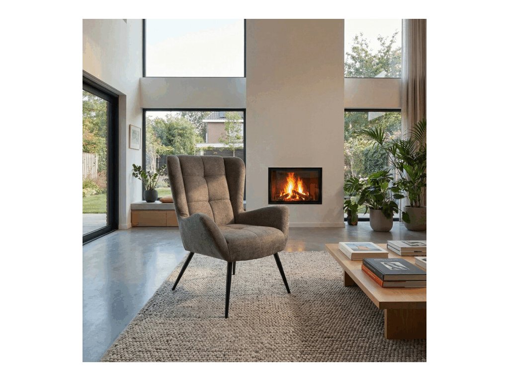 Čalouněné křeslo ušák AK-H9206 nabízí vysoký komfort díky bohatému polstrování sedáku i opěradla, které je potažené prémiovou látkou s příjemnou texturou. Charakteristické vysoké boční opěrky poskytují oporu hlavě a ramenům, což zvyšuje pohodlí při čtení, sledování televize i odpočinku.