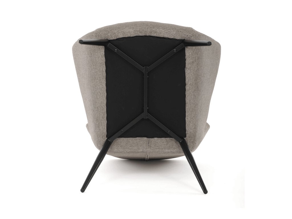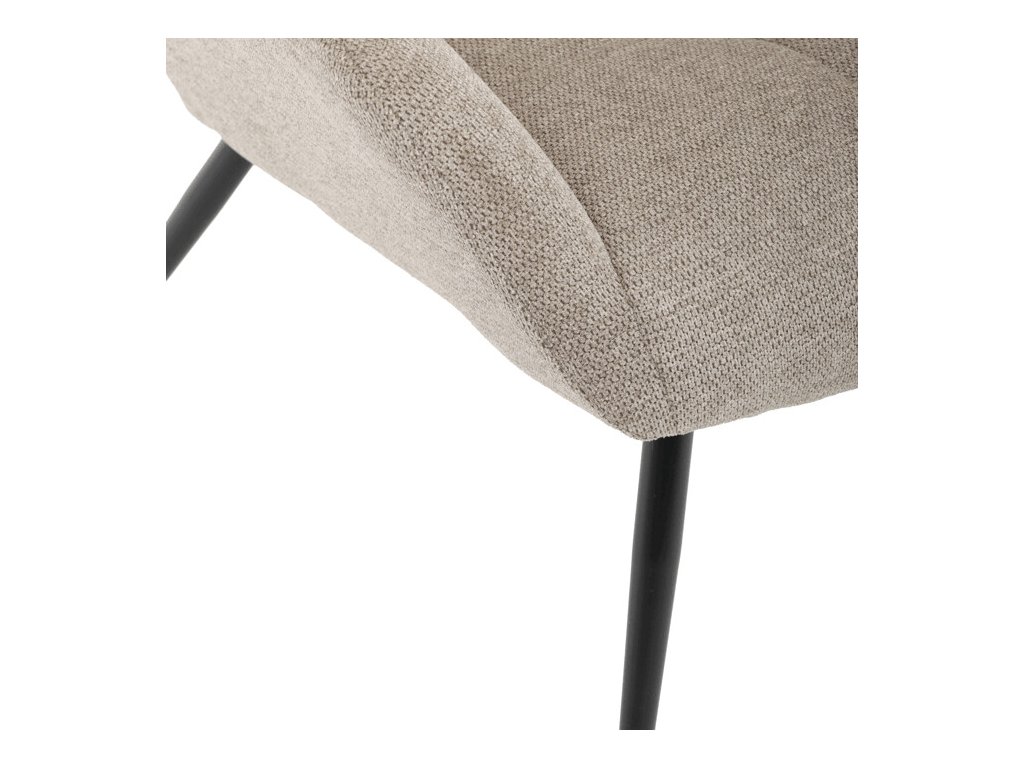 Integrované područky podporují ergonomické sezení, zatímco pevné černé kovové nohy zajišťují stabilitu a dlouhou životnost křesla. Nadčasový tvar v kombinaci s neutrálním barevným provedením umožňuje snadné začlenění do moderních i klasických interiérů.