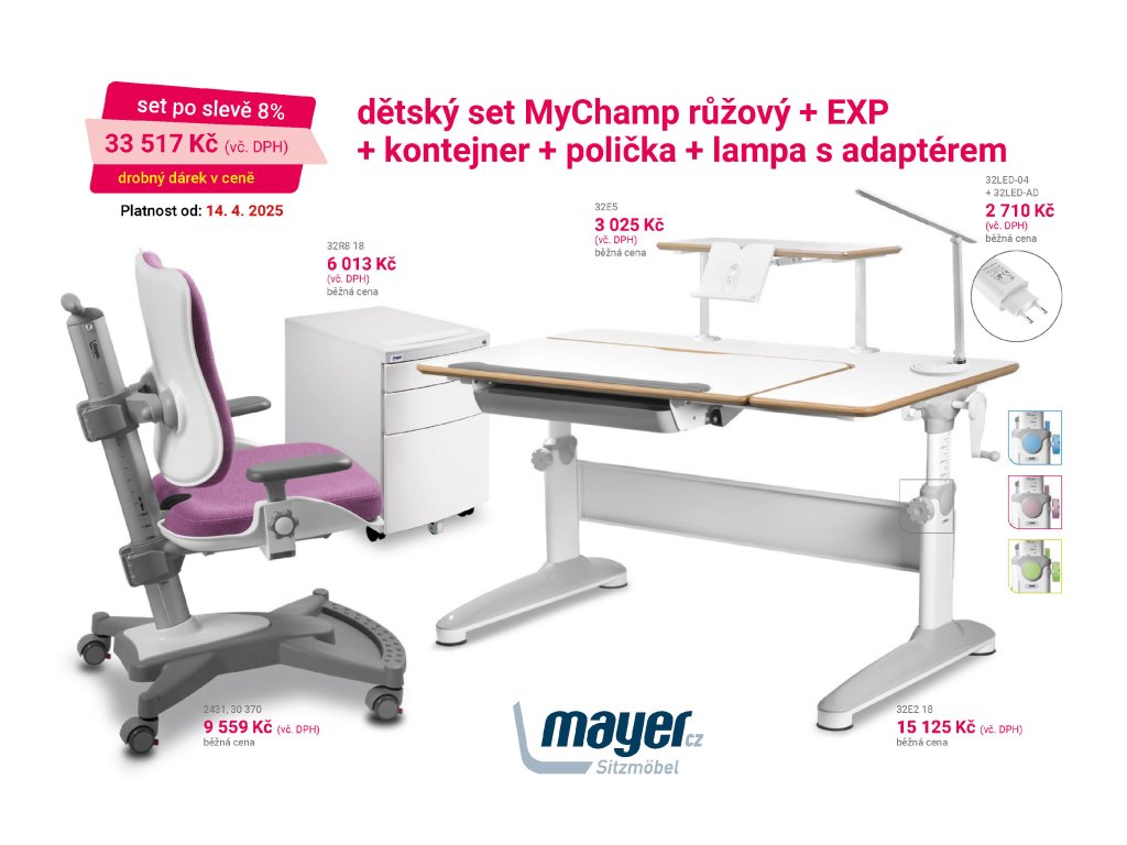 Dětský rostoucí set MyChamp růžový + EXP + kontejner + polička + lampa