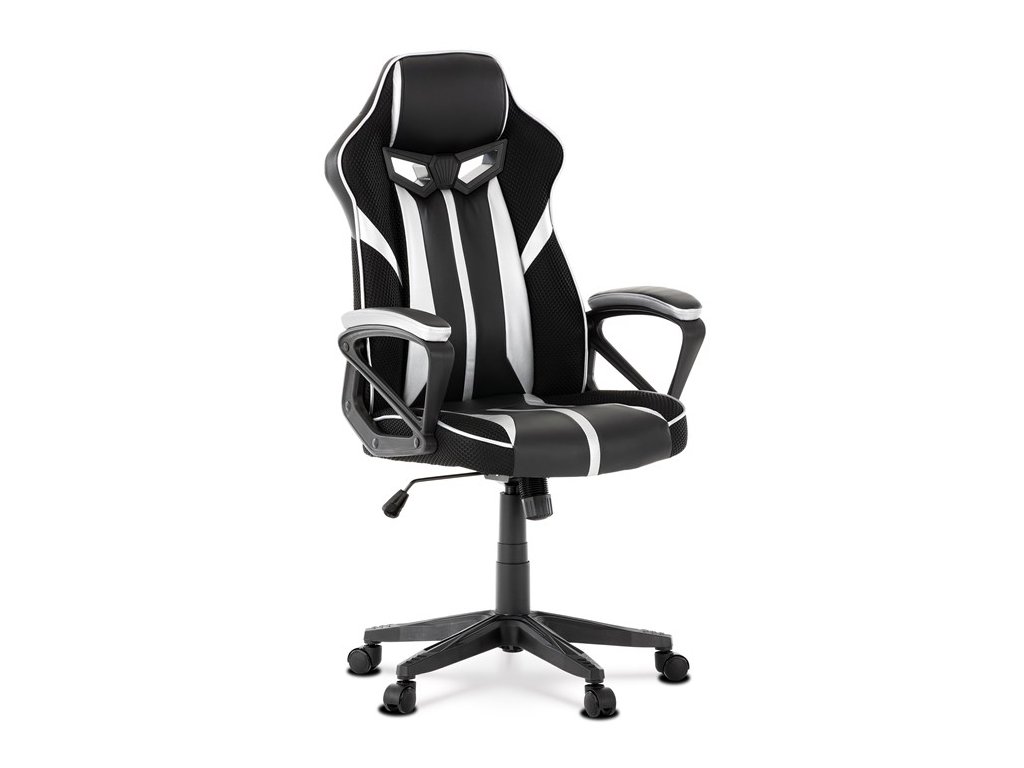 Elegantní herní křeslo KA-Y341 SIL v designu závodní sedačky přináší maximální komfort, atraktivní vzhled a praktické funkce. Provedení Dark Racing Style kombinuje zaoblené linie s ostře řezanými prvky plastového lemování a výraznými designovými otvory ve stylizovaném tvaru mušle, které evokují závodní atmosféru a zároveň usnadňují manipulaci.Potah je tvořen kombinací prodyšné černé látky MESH a doplňků z černé a stříbrné ekokůže. Polstrování z kvalitní PU pěny zajišťuje pohodlí i při delším sezení. Integrovaná statická opěrka hlavy a vyšší opěrák přispívají k celkové ergonomii.