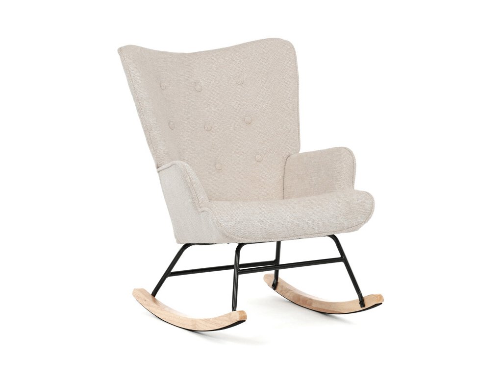 Stabilitu křesla zaručují nohy z kombinace černého kovu a masivního kaučukovníku, které dodávají konstrukci pevnost a dlouhou životnost. Plynulý a tichý houpací mechanismus podporuje uvolnění a příjemný odpočinek.