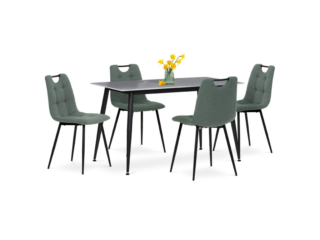 Jídelní set ASE-1001 od značky Autronic představuje moderní a elegantní řešení pro stylovou jídelnu. Součástí setu je prostorný obdélníkový stůl se slinutou keramickou deskou v dekoru šedého mramoru, která vyniká vysokou odolností proti poškrábání i snadnou údržbou. Stabilní kovová podnož v černém provedení zajišťuje pevnost a dlouhou životnost.