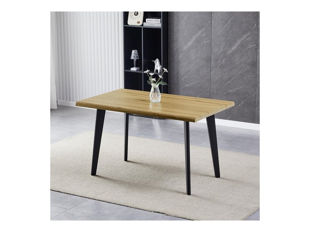 Tento jídelní stůl značky Autronic vnáší do interiéru rustikální kouzlo s moderním nádechem. Obdélníková deska z kvalitního MDF materiálu imituje vzhled opracovaného dřeva a přidává prostoru na autentičnosti a teple. Černé kovové nohy přidávají industriální kontrast a zajišťují pevnost a stabilitu. Svým nadčasovým designem a praktickými rozměry 130x80x75 cm se tento stůl hodí do různých stylů jídelen i kuchyní. Vyberte si tento elegantní a odolný stůl od Autronic a dopřejte si pohodlné rodinné stolování.