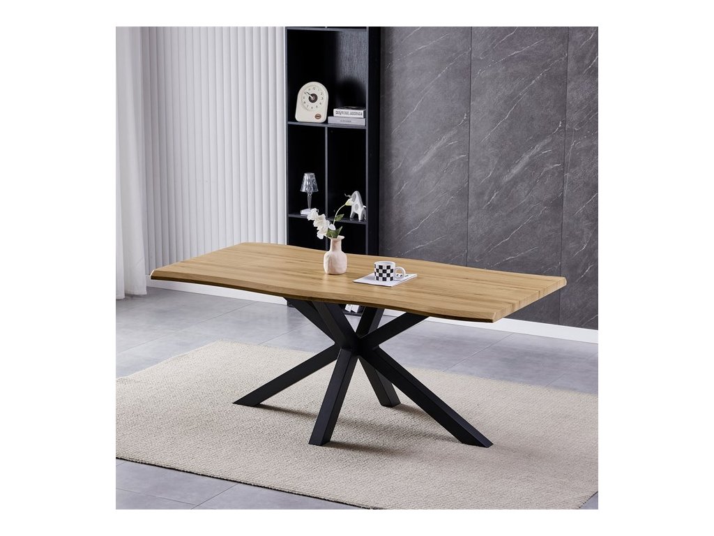 Moderní jídelní stůl HT-F4618 od značky Autronic zaujme svým elegantním designem a kombinací přírodního vzhledu desky s industriální kovovou podnoží. Povrch MDF desky v různých dekorech dodává stolu jedinečný charakter, zatímco černé nohy zajišťují stabilitu a stylový kontrast. Obdélníkový tvar a dostatečný prostor umožní pohodlné stolování pro celou rodinu. Tento stůl je ideální volbou pro moderní i rustikální interiéry, kde se stane dominantním prvkem každé jídelny.