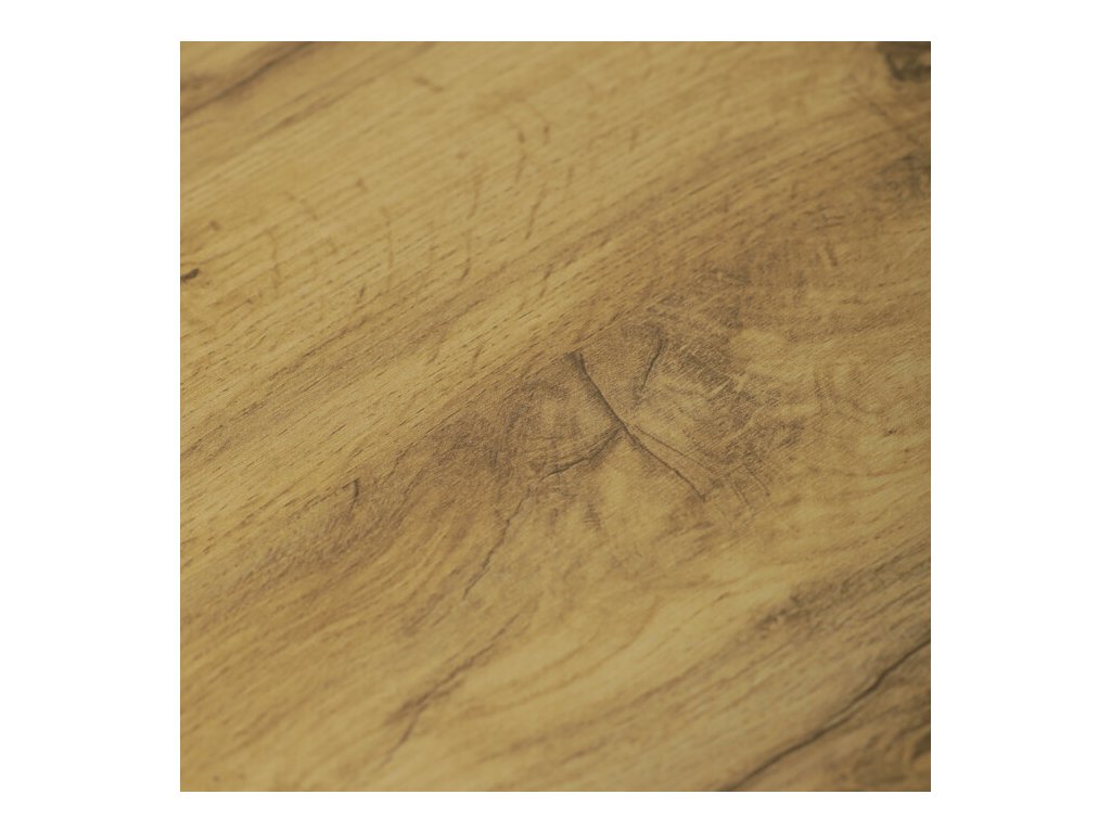 Rektifikační nohy umožňují vyrovnání nerovností podlahy, což zvyšuje komfort při používání. Kombinace přírodního dekoru desky a matné černé konstrukce vytváří elegantní kontrast, který se snadno začlení do moderních i klasických interiérů.