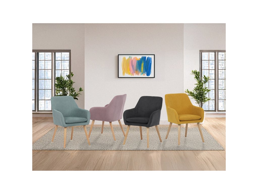 Židle je vybavena širokým, komfortním sedákem s výškou 50 cm, který zajišťuje pohodlné sezení i při delším posezení. Potah z jemné látky dodává židli svěží vzhled a zároveň příjemný pocit na dotek.
