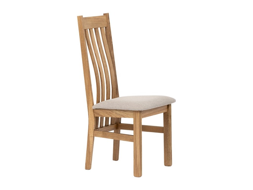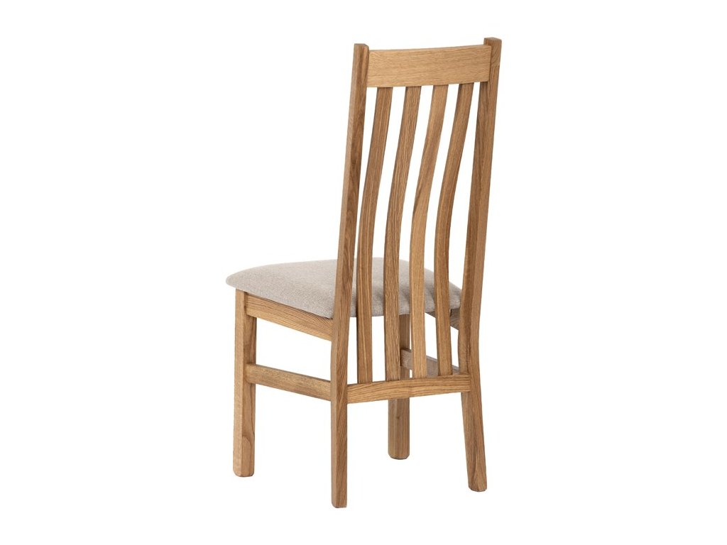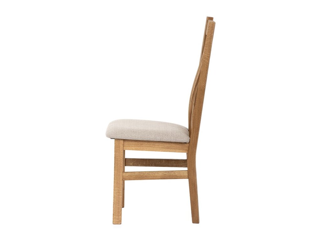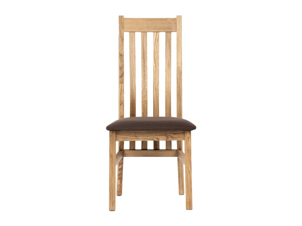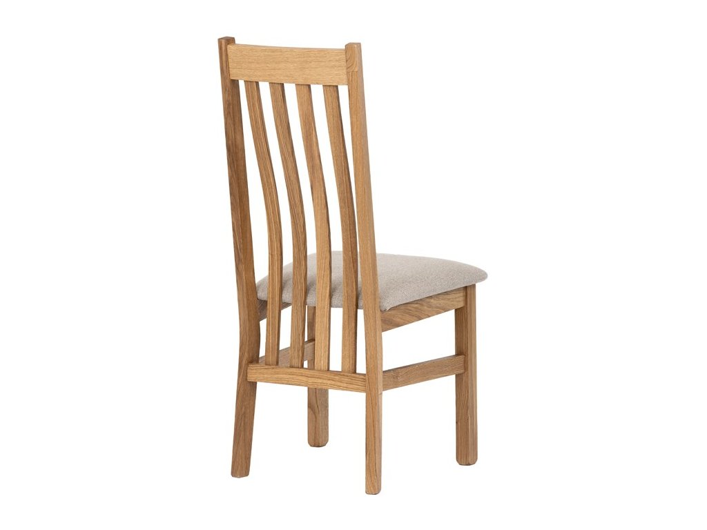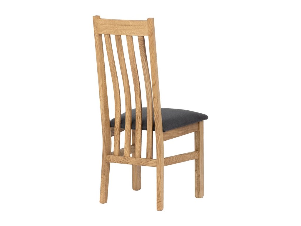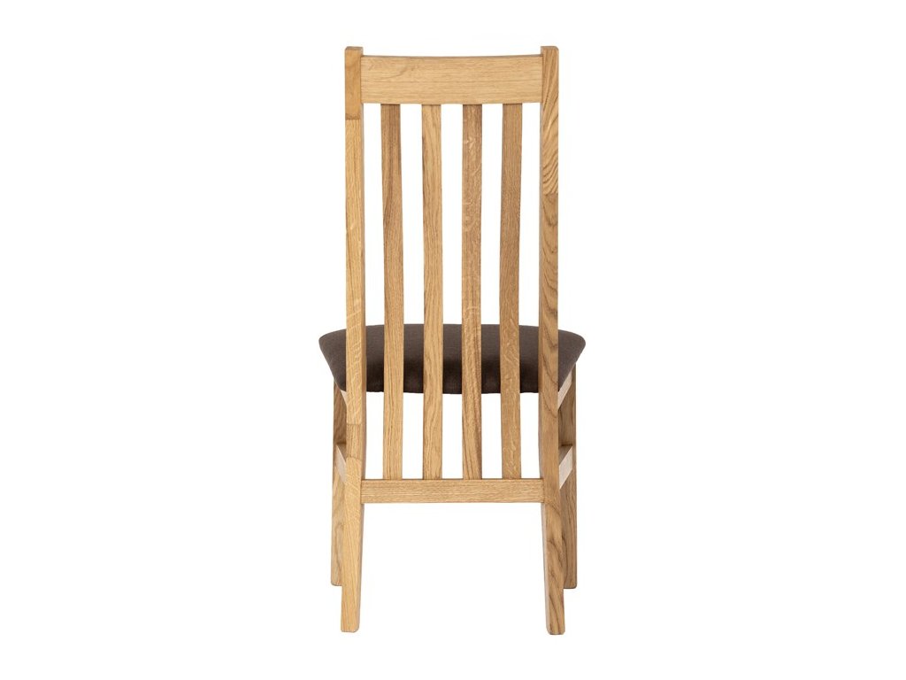 Konstrukce je pevná, celomasivní a ošetřená tvrdovoskovým olejem, který poskytuje dřevu dlouhodobou ochranu a podtrhuje jeho přirozenou krásu. Ergonomicky tvarované opěradlo se vzpěrami kopíruje tvar páteře, což přispívá k pohodlnému sezení.