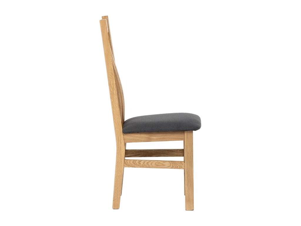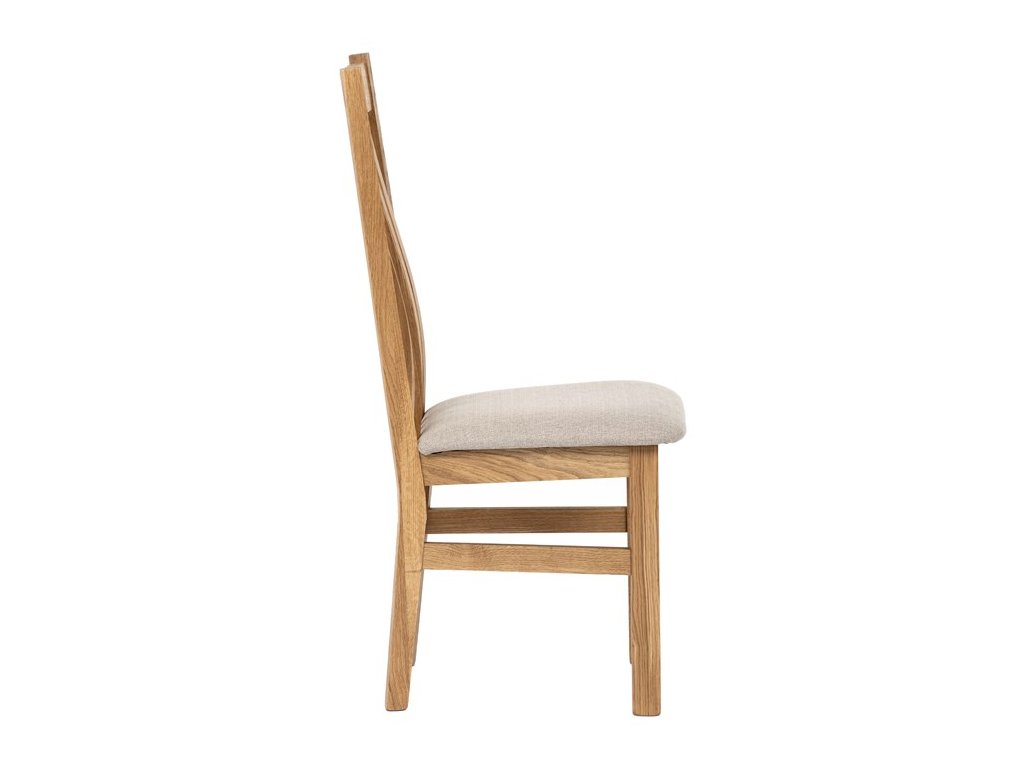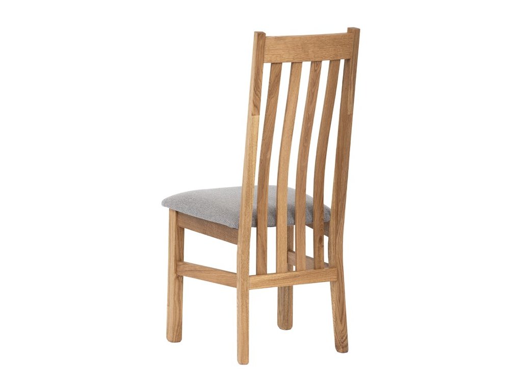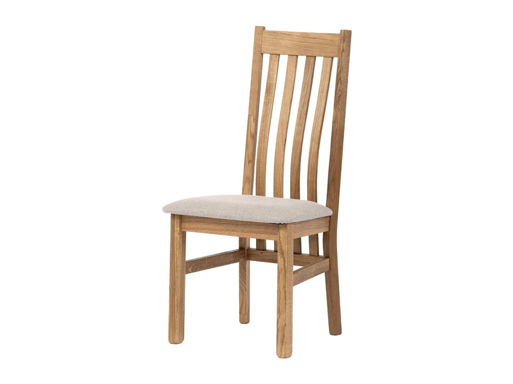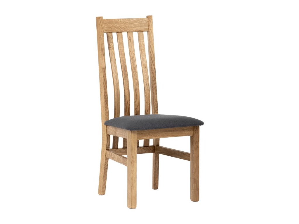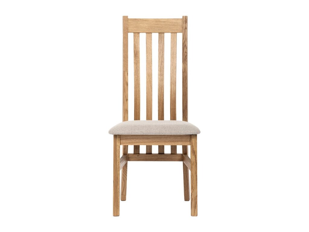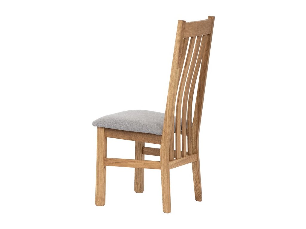 Konstrukce je pevná, celomasivní a ošetřená tvrdovoskovým olejem, který poskytuje dřevu dlouhodobou ochranu a podtrhuje jeho přirozenou krásu. Ergonomicky tvarované opěradlo se vzpěrami kopíruje tvar páteře, což přispívá k pohodlnému sezení.