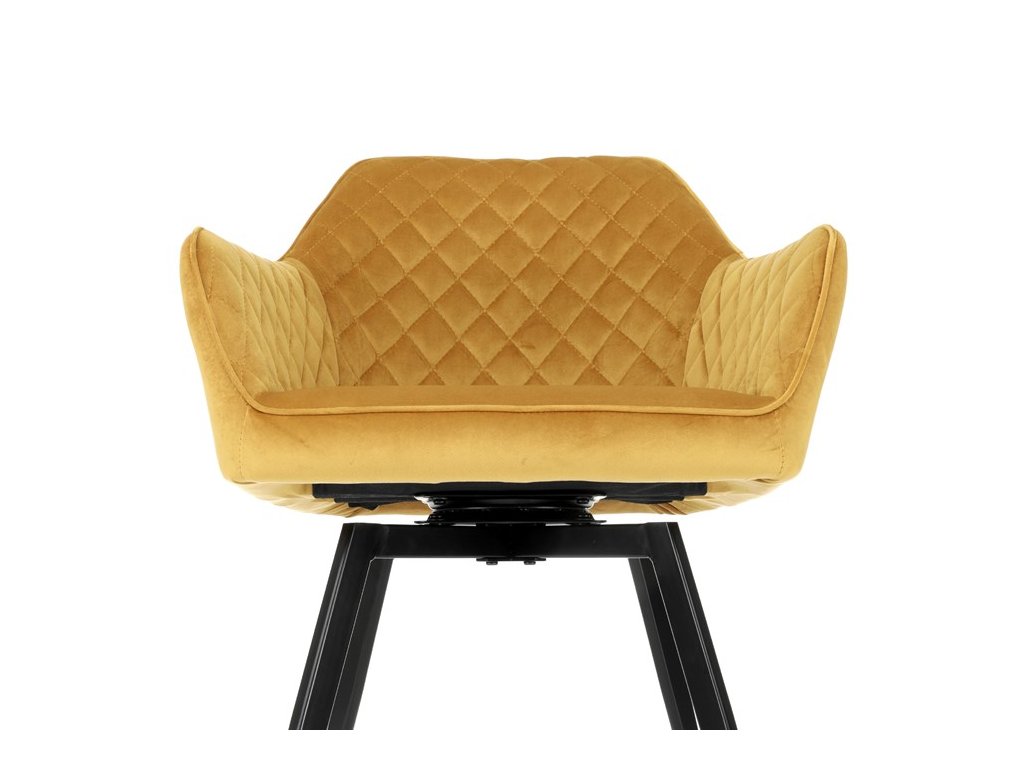 Stabilní konstrukci tvoří čtyři kónické kovové nohy obdélníkového průřezu s černým matným práškovým nástřikem, zakončené plastovými kluzáky, které chrání podlahu před poškozením. Židle je vybavena otočným mechanismem, který umožňuje otáčení sedáku o 90° na obě strany a zároveň jej automaticky vrací do původní pozice – díky tomu zůstávají židle u stolu vždy rovně srovnané.