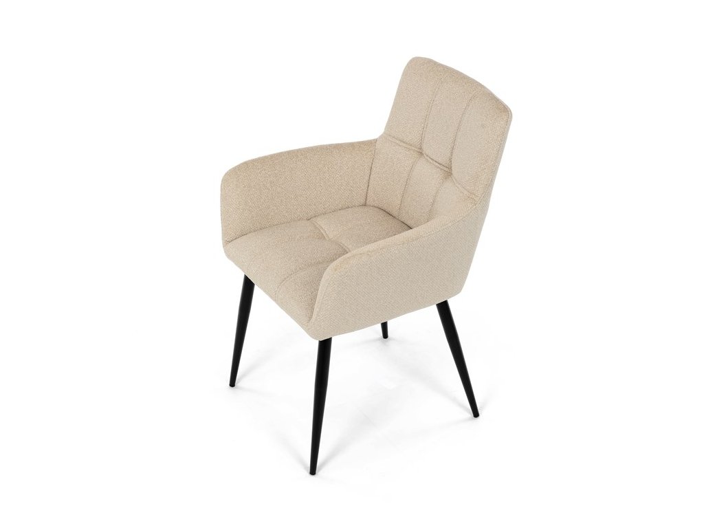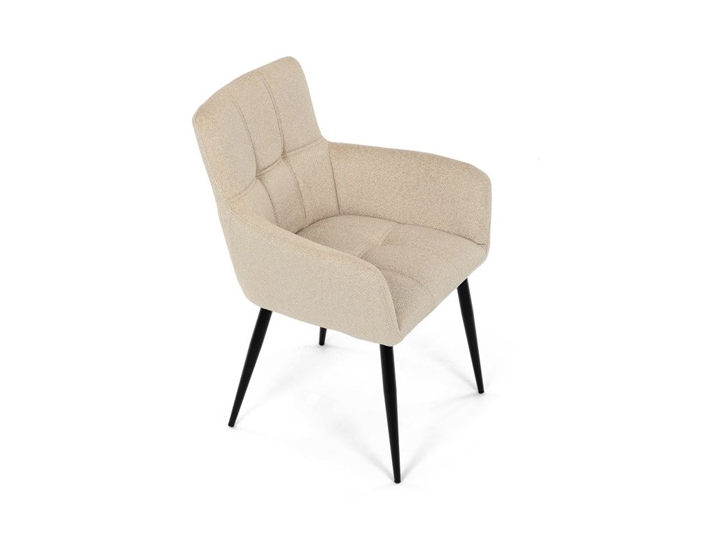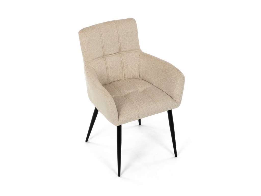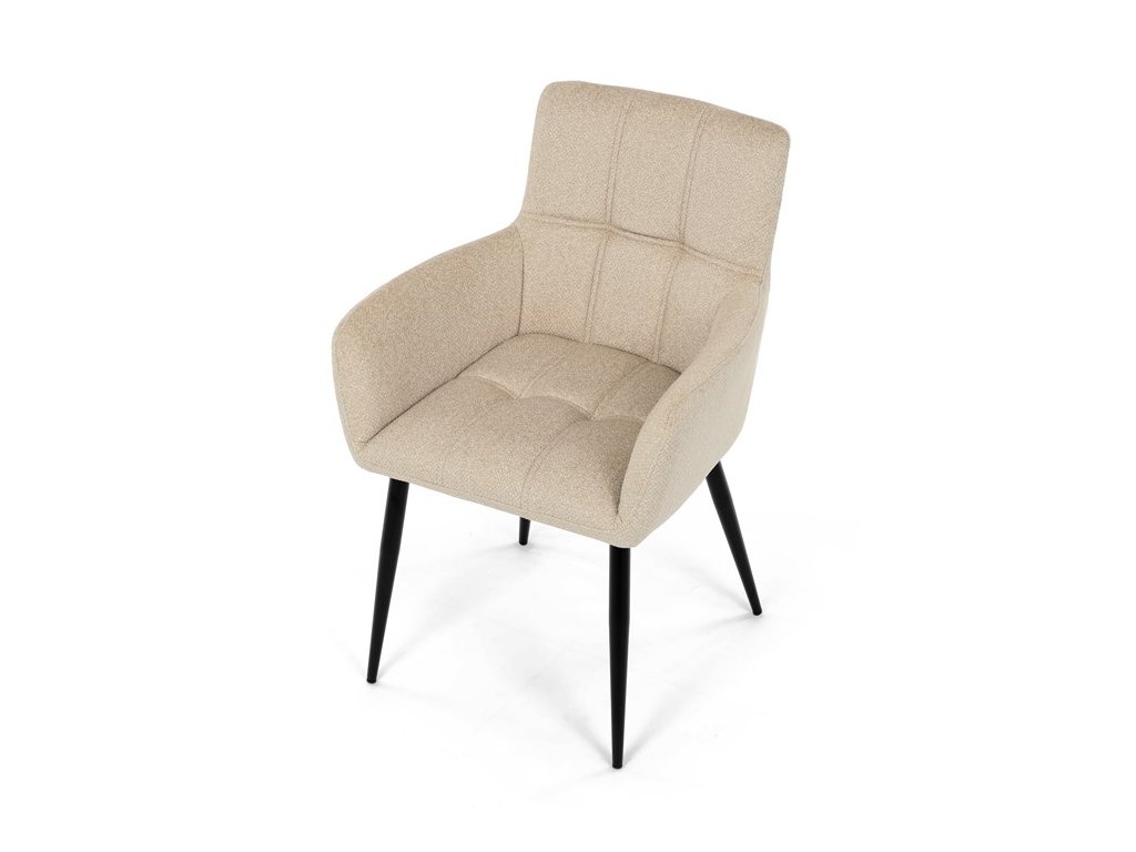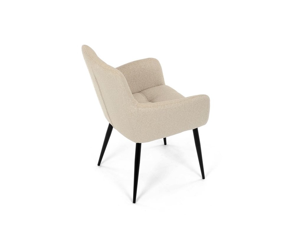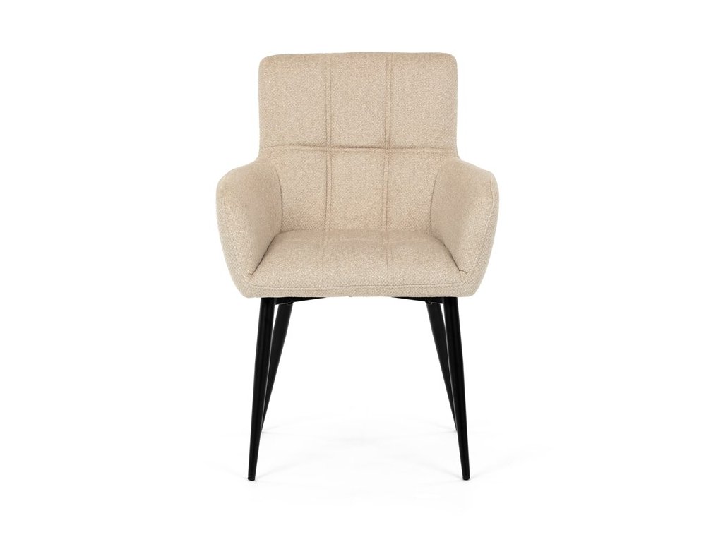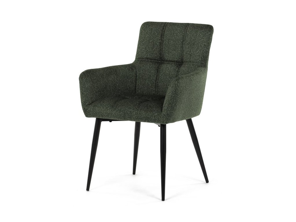 Černé kovové nohy zajišťují stabilitu a dodávají židli jemný industriální nádech. Komfortní područky a ergonomické provedení oceníte při každém posezení. Židle se hodí nejen do domácí jídelny, ale i do restauračních prostor, kde vytvoří útulnou atmosféru.