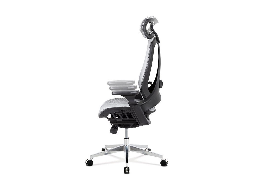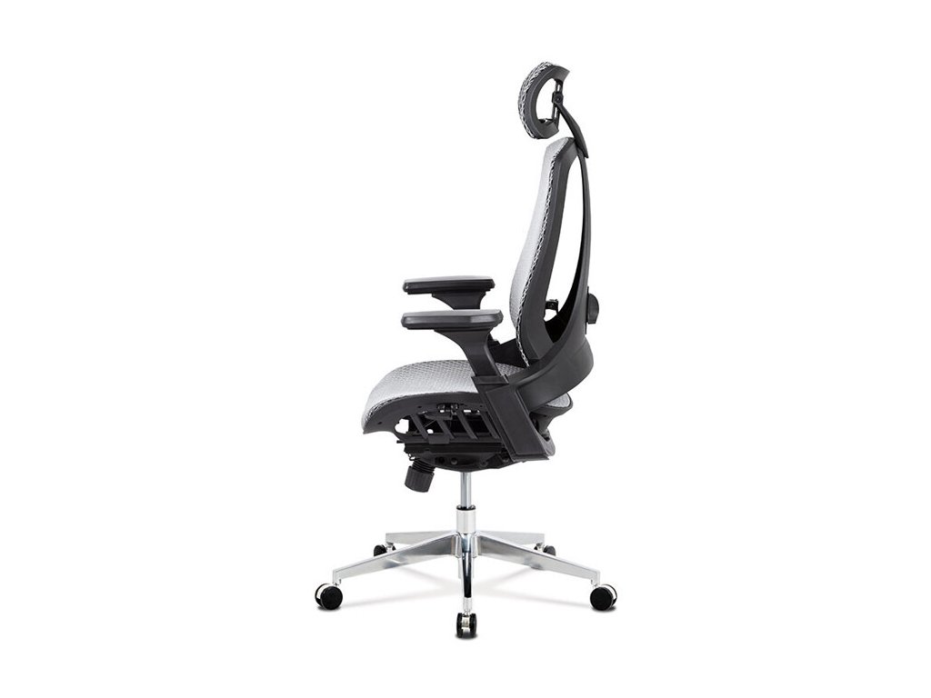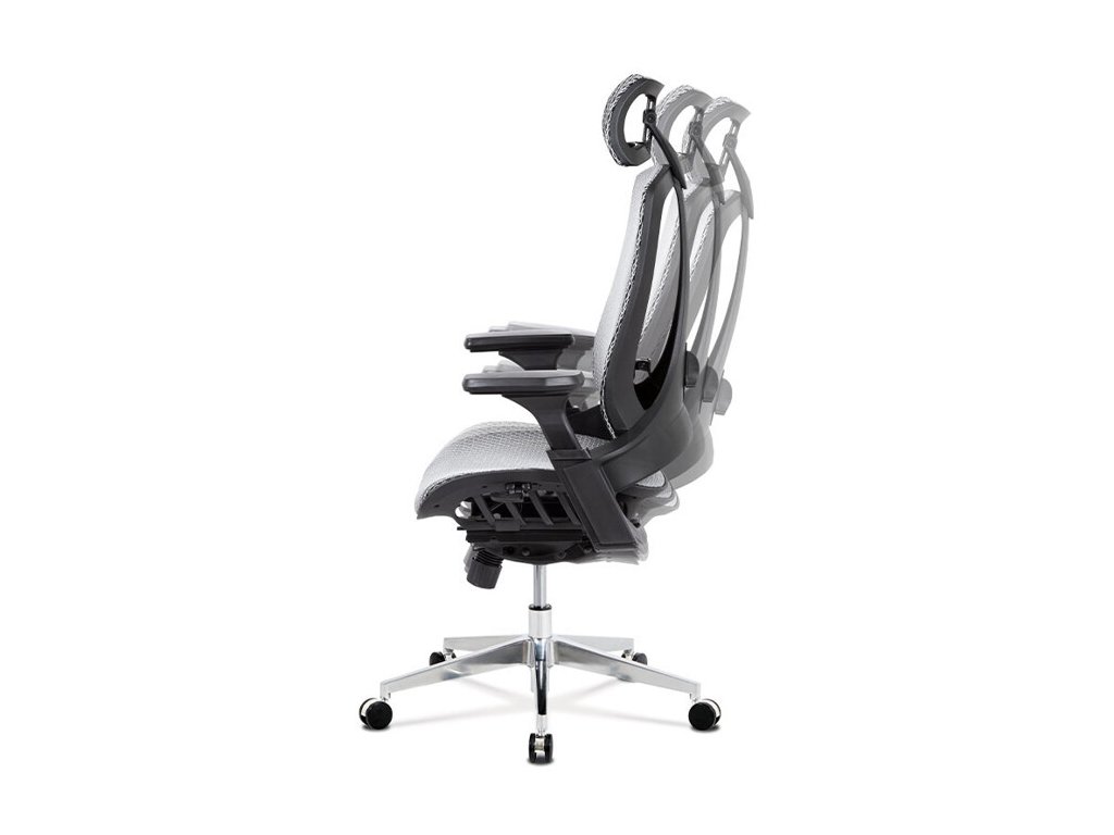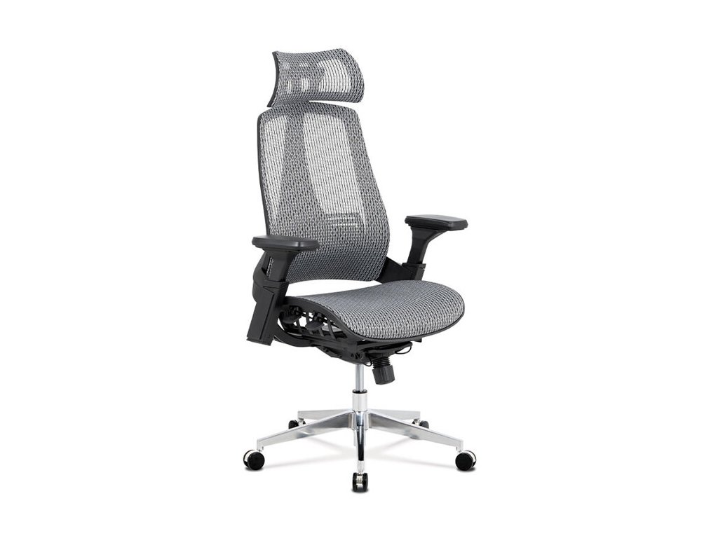 Kancelářská židle KA-A189 GREY s šedou MESH síťovinou nabízí moderní a vzdušný design vhodný pro dlouhodobé sezení. Lankový synchronní mechanismus umožňuje plynulé nastavení opěráku i sedáku, včetně posuvu sedáku pro optimální ergonomii. Opěrák je vybaven výškově nastavitelnou bederní opěrkou a opěrkou hlavy, které podporují správné držení těla a snižují únavu během práce. Pevný kovový kříž zajišťuje stabilitu a odolnost, zatímco výškově nastavitelné područky přispívají k individuálnímu komfortu. Celkově je židle navržena pro dlouhou životnost a pohodlí v kancelářském prostředí. Nosnost židle je 120 kg.