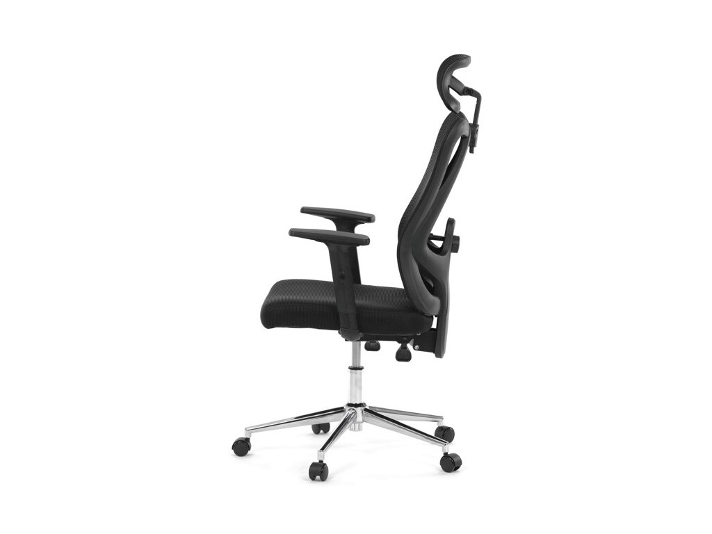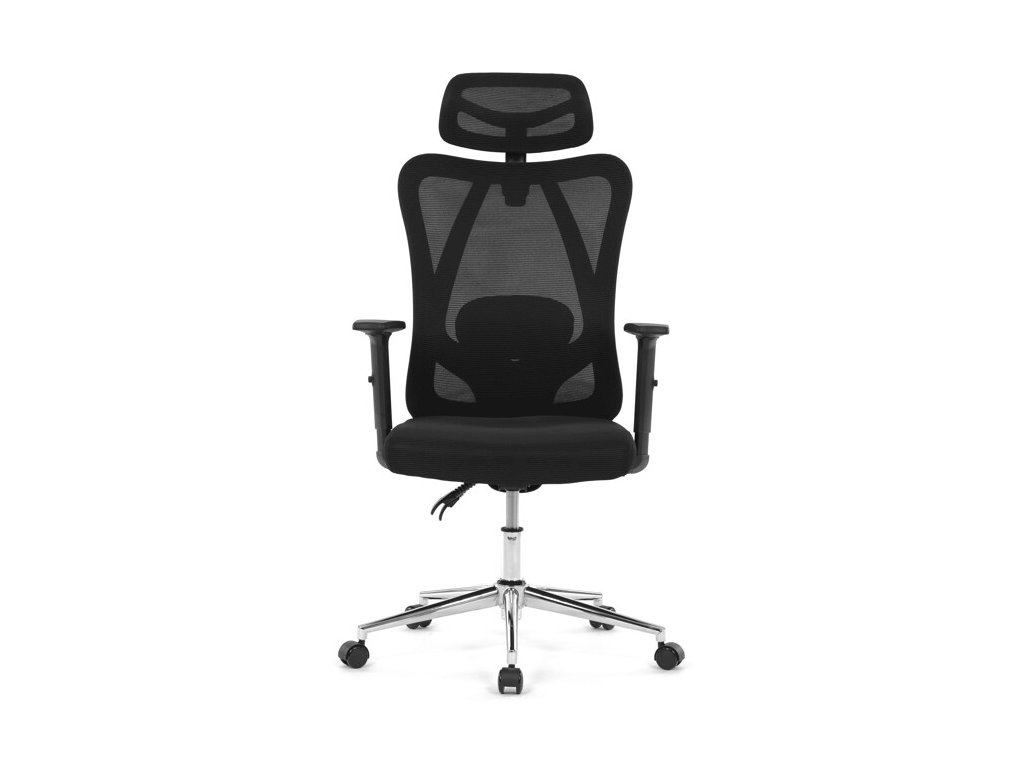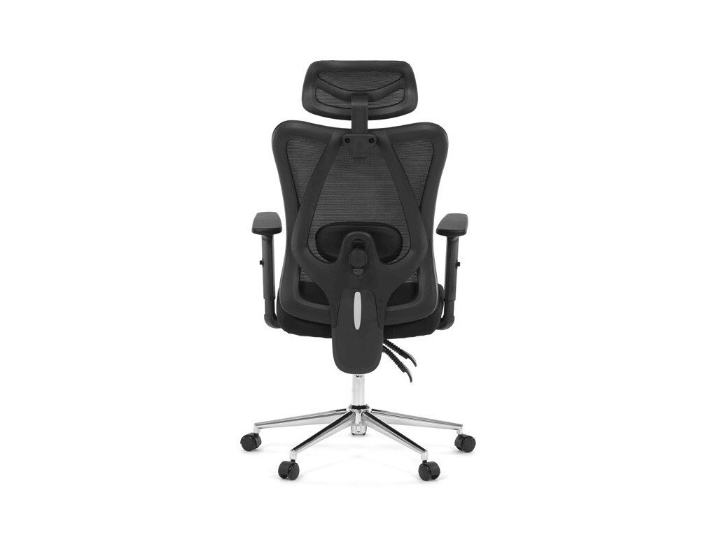 Kancelářská židle KA-R216 BK nabízí komfortní a ergonomické sezení díky potahu z prodyšné černé síťoviny mesh, která zajišťuje ideální cirkulaci vzduchu i při dlouhém používání. Opěrák je vybaven výškově nastavitelným podhlavníkem a bederní opěrkou pro správnou oporu zad a krční páteře.