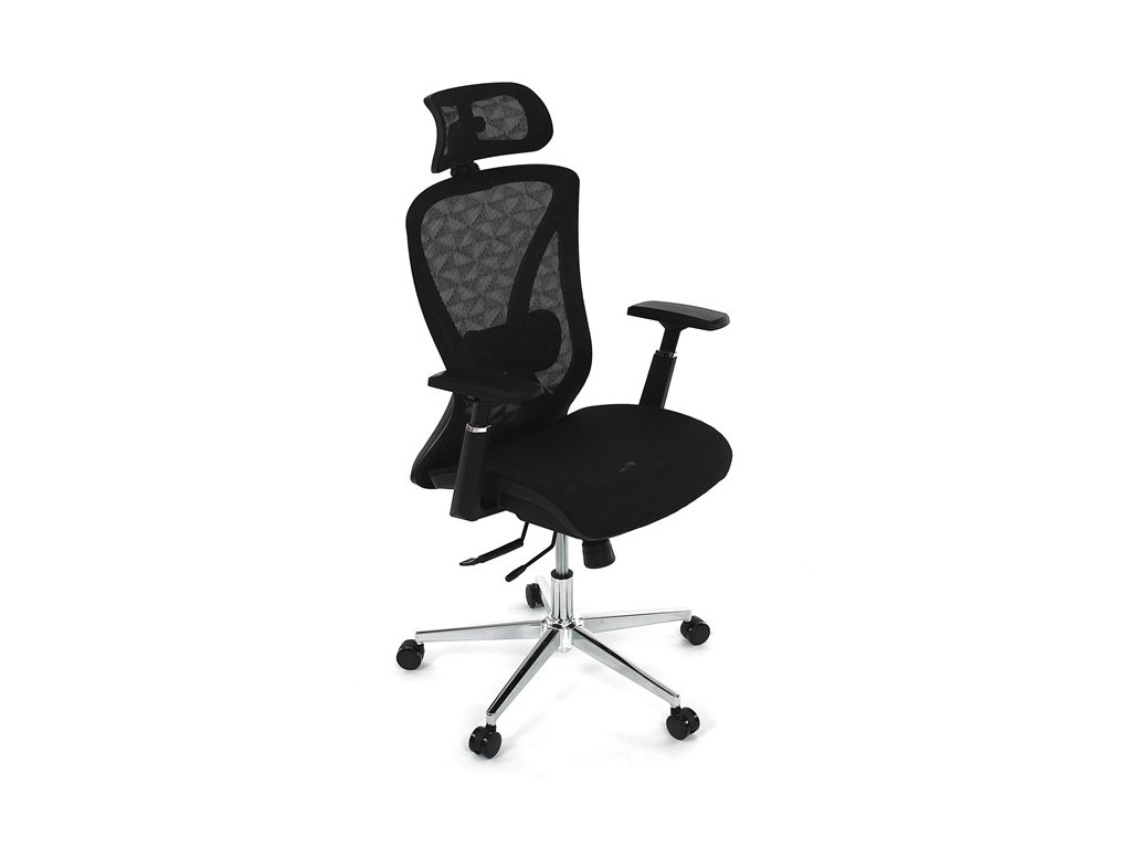 Součástí je také nastavitelná opěrka hlavy, která ulevuje krční páteři při delší práci u počítače. Stabilní konstrukce, plynulé nastavení výšky sedu a kvalitní materiály zaručují dlouhou životnost a komfortní používání. Nosnost židle je 120 kg.
