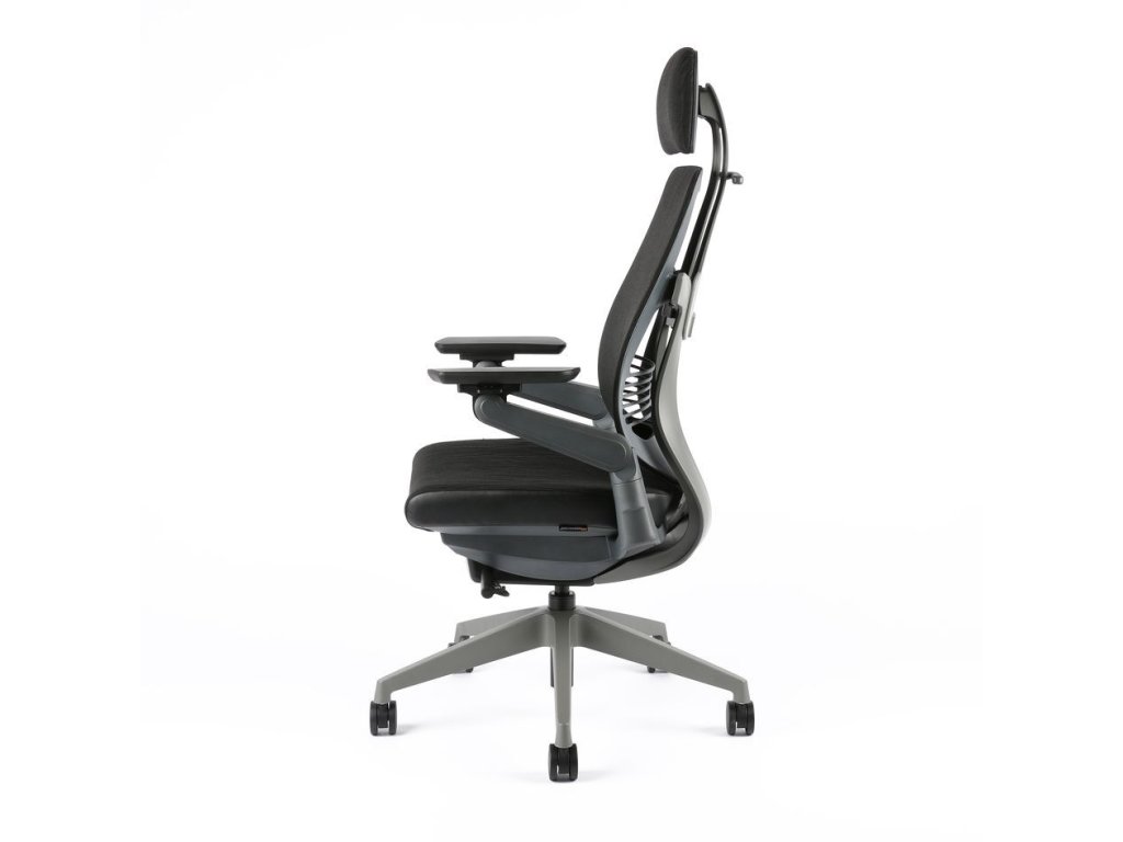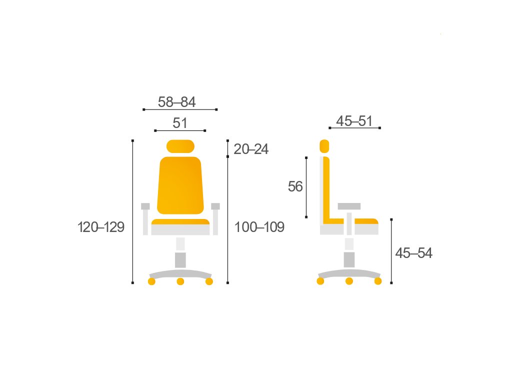 Židle je vybavena synchronním mechanismem s možností fixace opěráku ve čtyřech polohách a funkcí práce v mírném předklonu, která podporuje aktivní sezení. Plynulé nastavení hloubky sedáku umožňuje přesné přizpůsobení postavě a správné podepření nohou. Nastavitelná síla protiváhy chrání proti nečekanému zhoupnutí opěráku a zvyšuje bezpečnost i komfort sezení.