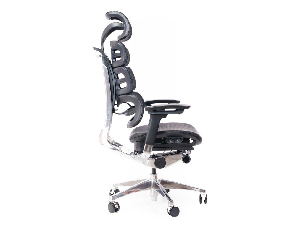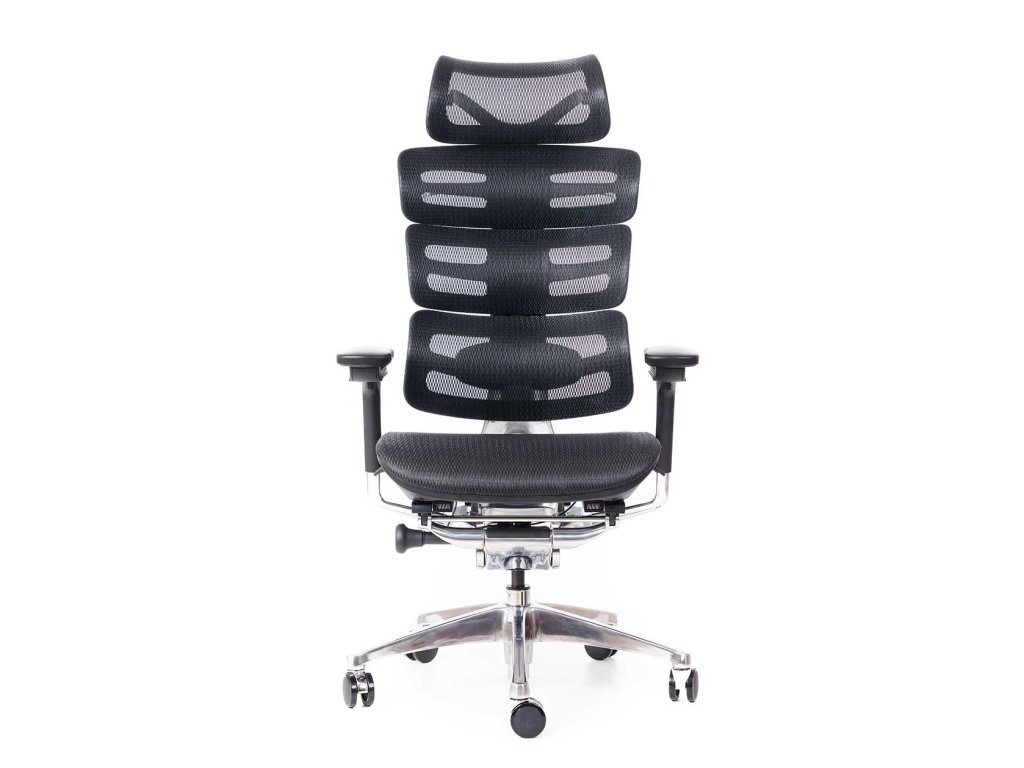 Židle je vybavena synchronním mechanismem s vícebodovou aretací, možností hloubkového nastavení sedu a 4D nastavitelnými područkami s polyuretanovými krytkami. Stabilitu zajišťuje hliníkový pětiramenný kříž s univerzálními kolečky Ø 60 mm vhodnými pro všechny typy podlah. Praktickým doplňkem je také odkládací ramínko na šaty. Barevné provedení: černá samonosná síťovina