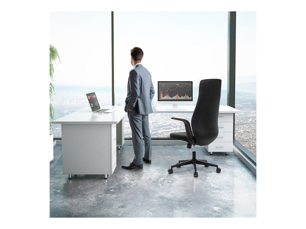 Elegantní kancelářské křeslo KA-T8325 BK od značky Autronic vyniká moderním designem, kvalitním zpracováním a vysokým komfortem při sezení. Potah z černé ekokůže působí luxusně, je příjemný na dotek a zároveň snadno udržovatelný. Pevné područky poskytují stabilní oporu a dodávají křeslu výrazný charakter.