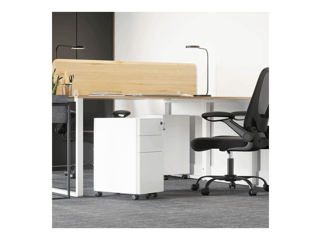 Díky kolečkům je kontejner snadno pojízdný a lze jej flexibilně přesouvat podle aktuálních potřeb pracovního prostoru. Kompaktní rozměry umožňují pohodlné umístění pod pracovní stůl nebo do volného kouta kanceláře, aniž by zabíral zbytečně mnoho místa.