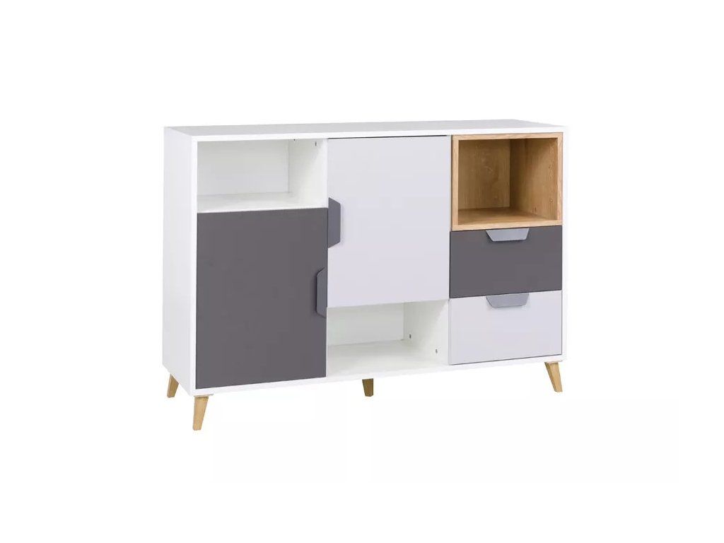 Komoda Poker R7 bílá/grafit/dub lefkas/šedá