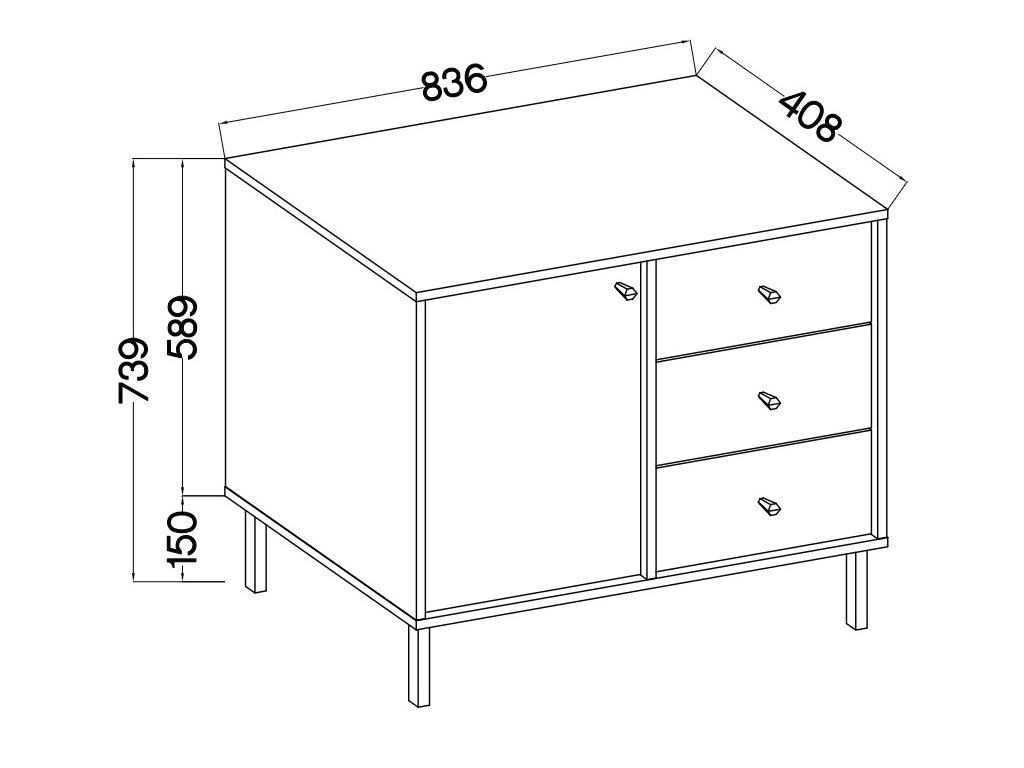 Komoda nabízí prakticky členěný úložný prostor v podobě jedněch dvířek a tří zásuvek, díky čemuž je ideální pro přehledné uložení nejrůznějších věcí. Skvěle se hodí do obývacího pokoje, ložnice, předsíně i pracovny. Je vyrobena ze snadno udržovatelného lamina, vhodného pro každodenní používání, a hrany jsou zakončeny vysoce odolným ABS materiálem, který zvyšuje životnost nábytku a chrání jej před poškozením. Kombinace odstínu lamina, barvy úchytek a nožiček odpovídá vyobrazené fotografii daného odstínu.