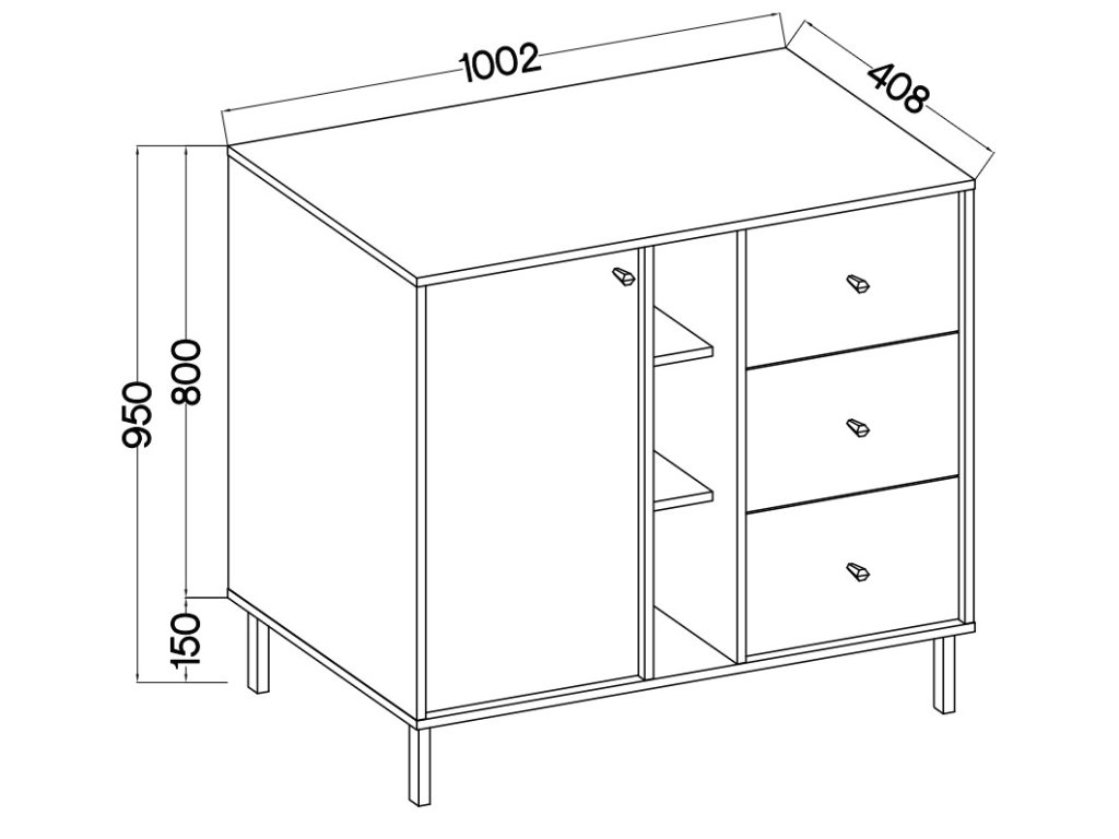 Komoda nabízí prakticky členěný úložný prostor v podobě jedněch dvířek, tří zásuvek a otevřené niky, která je ideální pro vystavení dekorací, knih nebo osobních doplňků. Díky promyšlenému uspořádání se skvěle hodí do obývacího pokoje, ložnice, předsíně i pracovny.