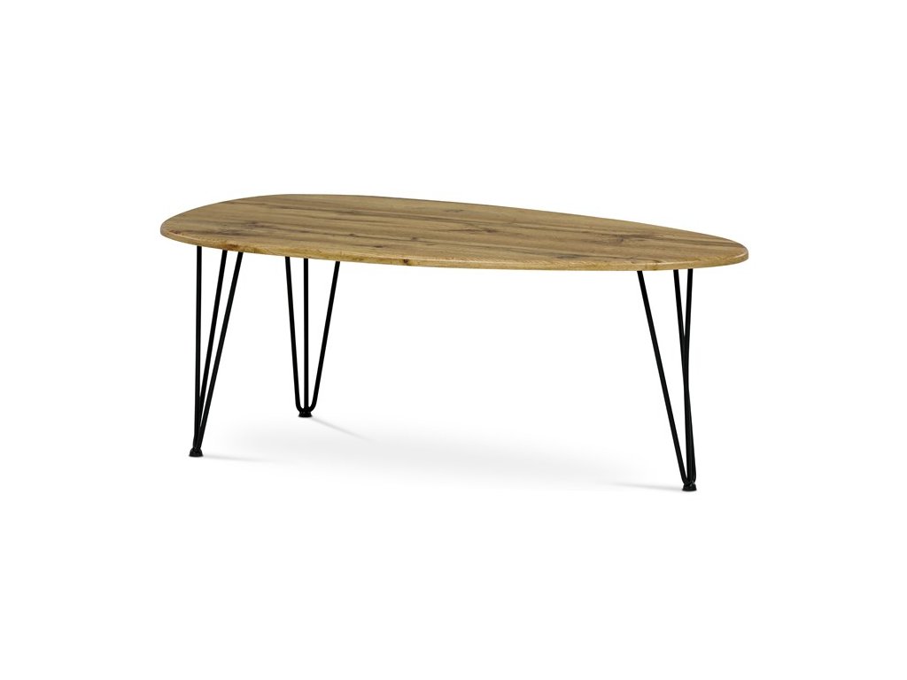 Konferenční stolek AF-3014 OAK od značky Autronic přináší do interiéru prvky industriálního designu spojené s moderní elegancí. Deska stolku z MDF v dekoru divokého dubu zaujme svým sytě hnědým odstínem a atypickým tvarem, který dodává celku dynamiku a jedinečný styl.