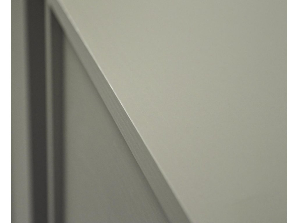 Je vyroben ze snadno udržovatelného lamina, vhodného pro každodenní používání. Hrany jsou zakončeny vysoce odolným ABS materiálem, který zvyšuje životnost nábytku a chrání jej před poškozením. Kombinace odstínu lamina, barvy úchytek a nožiček odpovídá vyobrazené fotografii daného odstínu.