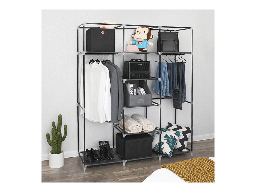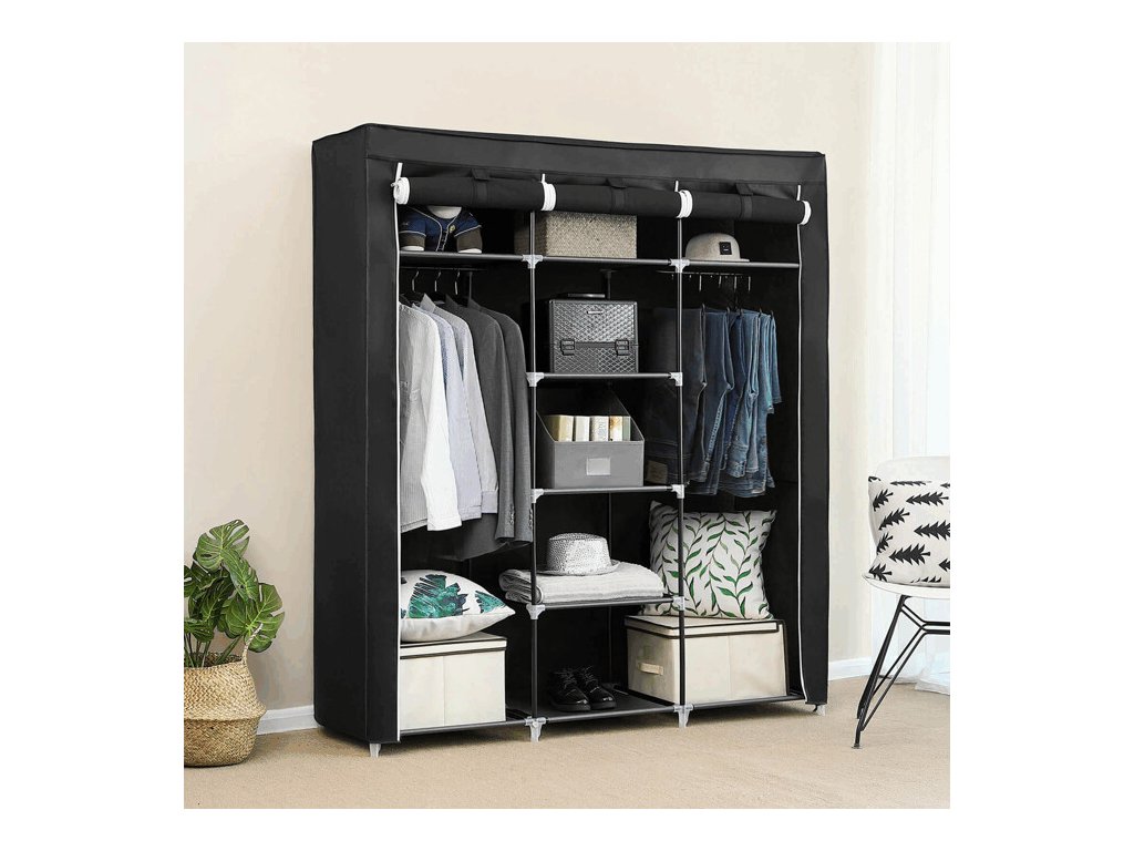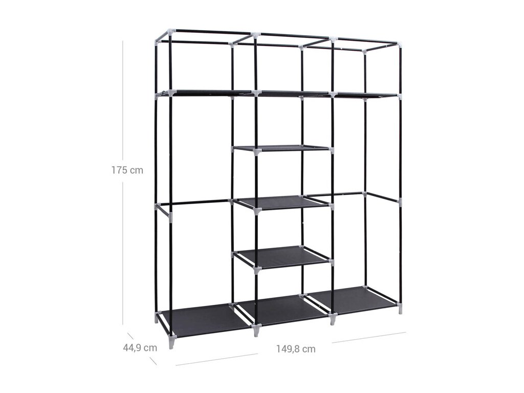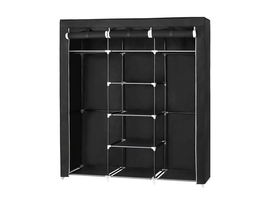 Látková šatní skříň AST-E1012 BK v černém provedení představuje praktické řešení úložného prostoru pro oblečení i doplňky. Pevná kovová konstrukce zajišťuje stabilitu a dlouhou životnost, zatímco ochranný látkový potah chrání uložené věci před prachem a nečistotami.