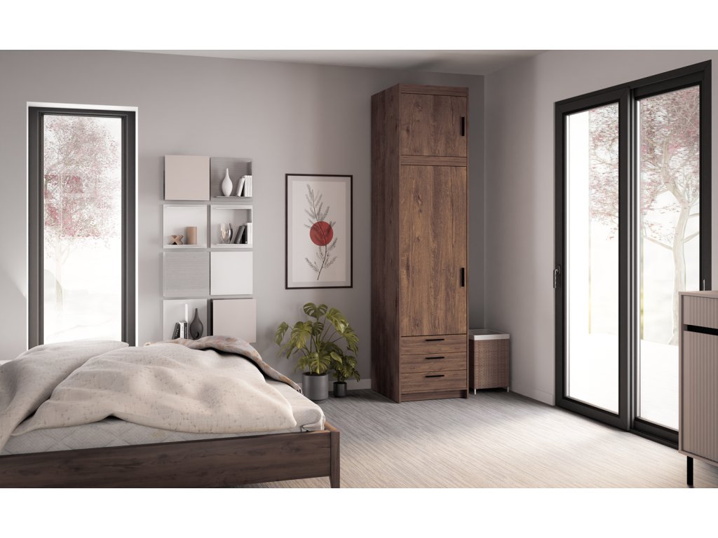Nástavec na skříň Enja 1D je určen pro šatní skříň Enja 1D3S a představuje praktické řešení, jak rozšířit úložný prostor bez nutnosti pořizovat další nábytek. Ideálně se hodí pro uložení sezónního oblečení, lůžkovin nebo méně často používaných věcí.