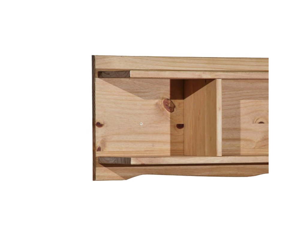 Police je vyrobena z masivní borovice, povrchově upravené voskem v teplém medovém odstínu. Jednoduše tvarovaný spodní díl podtrhuje její přirozený a nadčasový vzhled, díky kterému snadno zapadne do různých interiérů. Všude tam, kde je nábytek ze sestavy CORONA, má i tato police své místo.