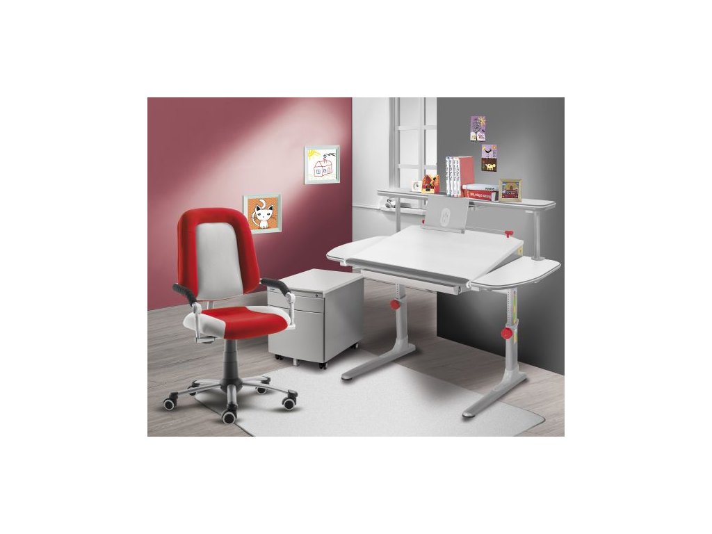 Pojízdný uzamykatelný kontejner je vhodným doplňkem do dětského pokoje k rostoucímu stolu. Kovový korpus je bílý. Sedací plocha čalouněný sedák.