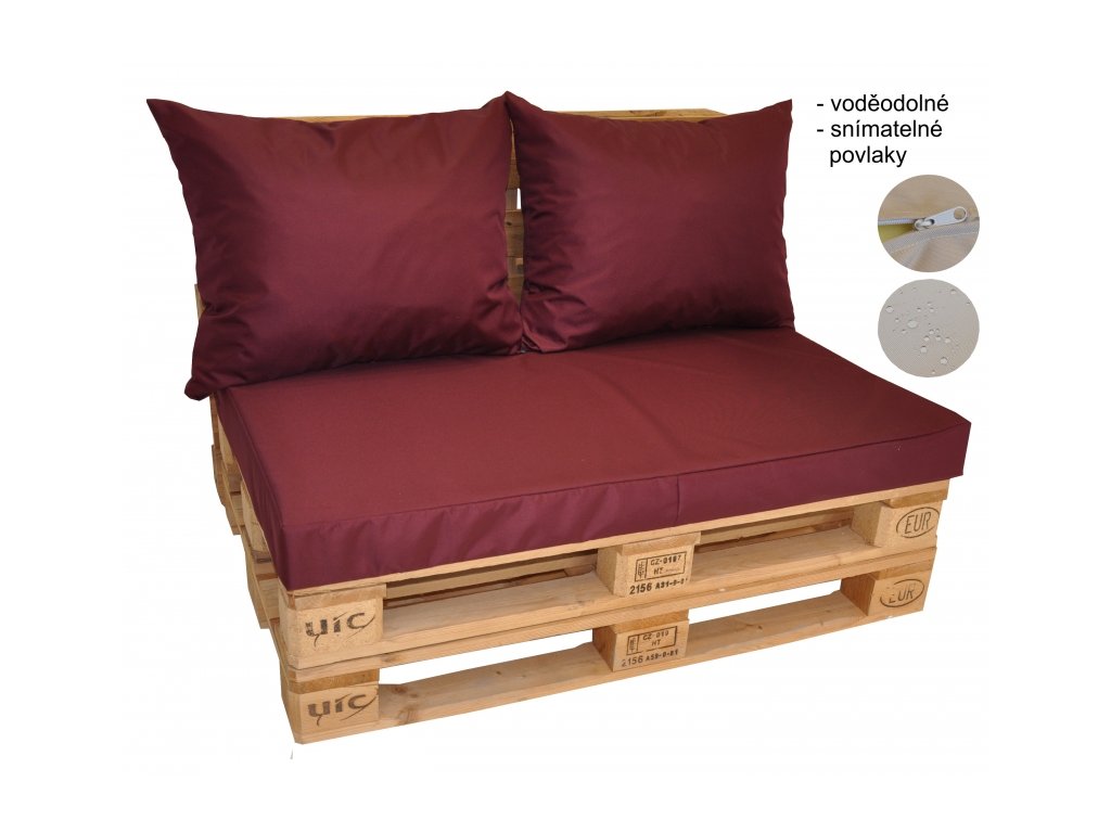 Polstry jsou vyrobeny z kvalitní voděodolné látky Oxford 600D. Všechny povlaky paletových polstrů jsou snímatelné a zapínatelné na zip. Polstry na paletové sezení jsou vyrobeny v České republice.