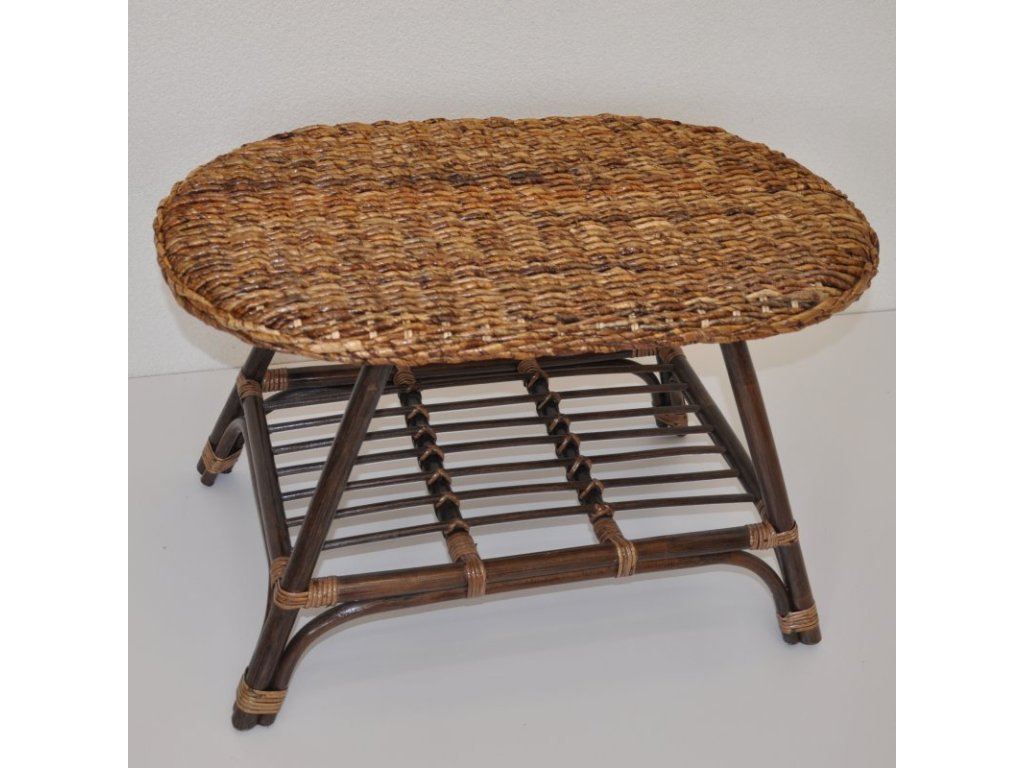 Ratanový stolek Fabion v oválném provedení je stylovým doplňkem interiéru, který zaujme výpletem z přírodních listů banánovníku. Tmavé provedení dodává stolku elegantní a exotický vzhled, díky kterému se skvěle hodí k ratanovému i přírodnímu nábytku.Stolek je ideální jako odkládací nebo konferenční stolek do obývacího pokoje, zimní zahrady nebo na chalupu. Přírodní materiály vytvářejí útulnou atmosféru a podtrhují jedinečný charakter každého kusu.