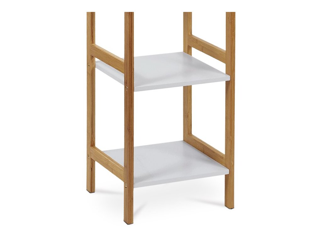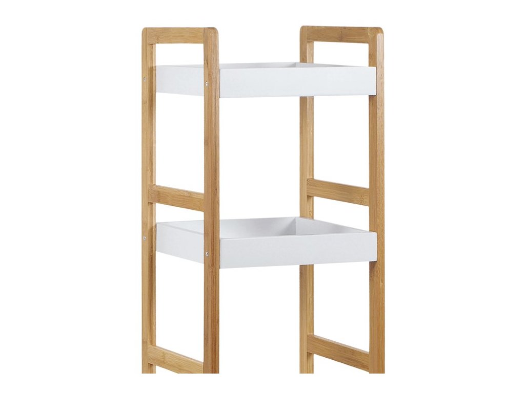 Multifunkční pětipolicový regál DR-013-5 ve skandinávském stylu je elegantní a funkční kousek nábytku, který se skvěle hodí do každého moderního interiéru. Nosná konstrukce z masivního bambusu je ošetřena kvalitním transparentním lakem, což zajišťuje vynikající voděodolnost a přirozený vzhled. Police jsou vyrobeny z MDF desek, lakovaných bílým matným polyuretanovým lakem, který je rovněž voděodolný.