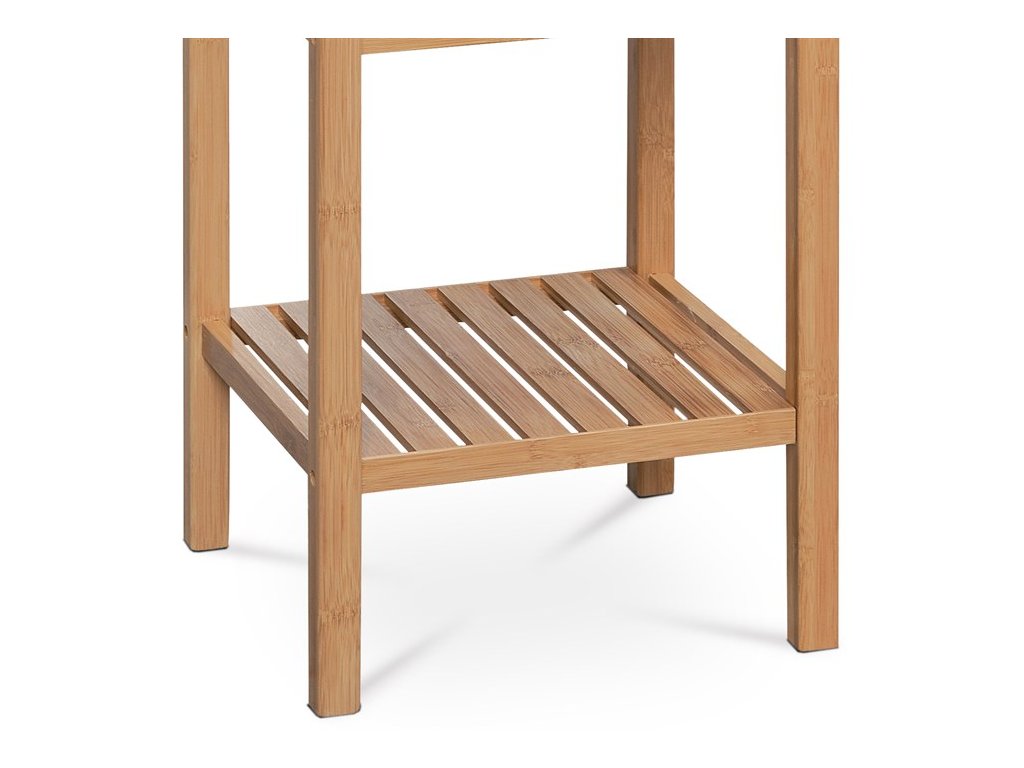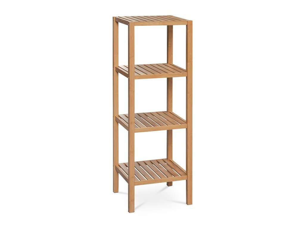 Multifunkční čtyřpolicový regál DR-011-4 je praktickým doplňkem do domácnosti, který nabízí stylové i funkční řešení úložného prostoru. Nosná konstrukce i police jsou vyrobeny z masivního bambusu, který je ošetřen kvalitním transparentním lakem. Díky této povrchové úpravě je regál voděodolný a odolný vůči vlhkosti – ideální volba do koupelny, ale skvěle zapadne i do kuchyně, předsíně nebo ložnice.Regál je vybaven čtyřmi pevnými roštovými policemi, které zajišťují dobrou cirkulaci vzduchu a umožňují snadný odtok vody. Každá police má nosnost 3 kg, celková nosnost regálu je 12 kg. Rozteč mezi policemi 29 cm poskytuje dostatek místa pro uložení kosmetiky, ručníků, osušek, květin či dekorací.