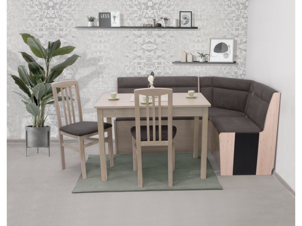 Rohová lavice je pravolevá – delší stranu si zvolíte při montáži. K lavici vybírejte stoly a židle Iktus.