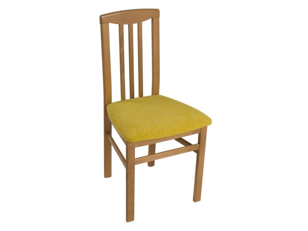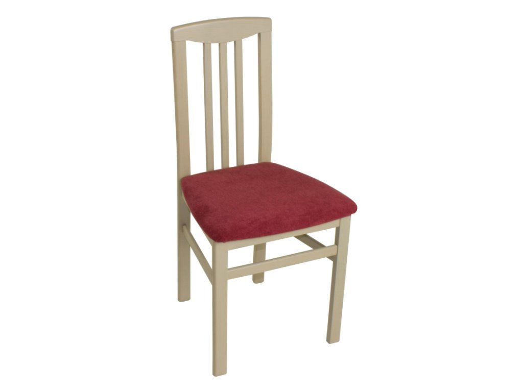 Dřevěná jídelní židle Ringo je vyrobena z masivního buku v mnoha dezénech. Má čalouněný sedák i opěrák, dostupný v různých látkách. Přírodní bukové dřevo nemá výraznou strukturu, proto jsou židle mořeny do odstínů co nejbližších barvě laminované desky.