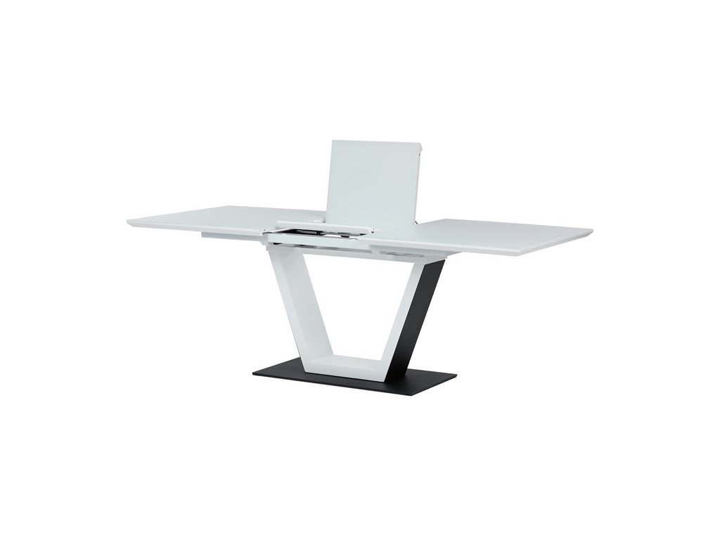 Rozkládací jídelní stůl HT-D1931 WT značky Autronic v elegantní bílé barvě je atraktivní volbou pro moderní interiéry. Obdélníková deska z tvrzeného skla nabízí odolný a snadno udržovatelný povrch. Design s centrální podnoží ve tvaru „V“ na stabilní základně dodává stolu výrazný charakter.