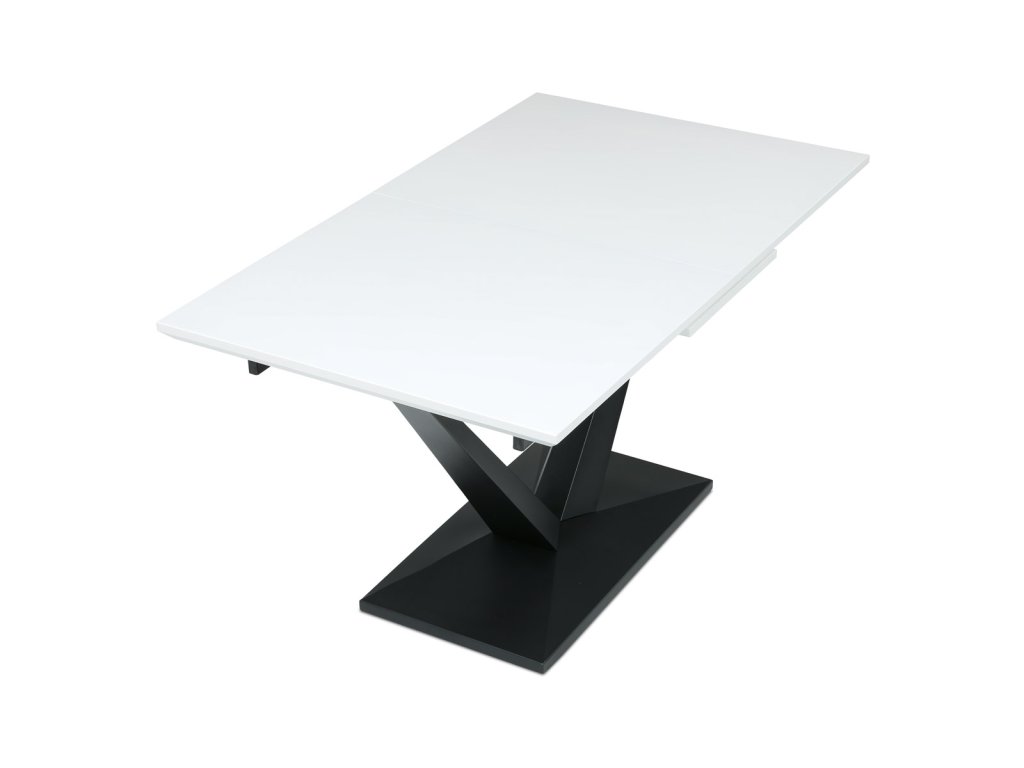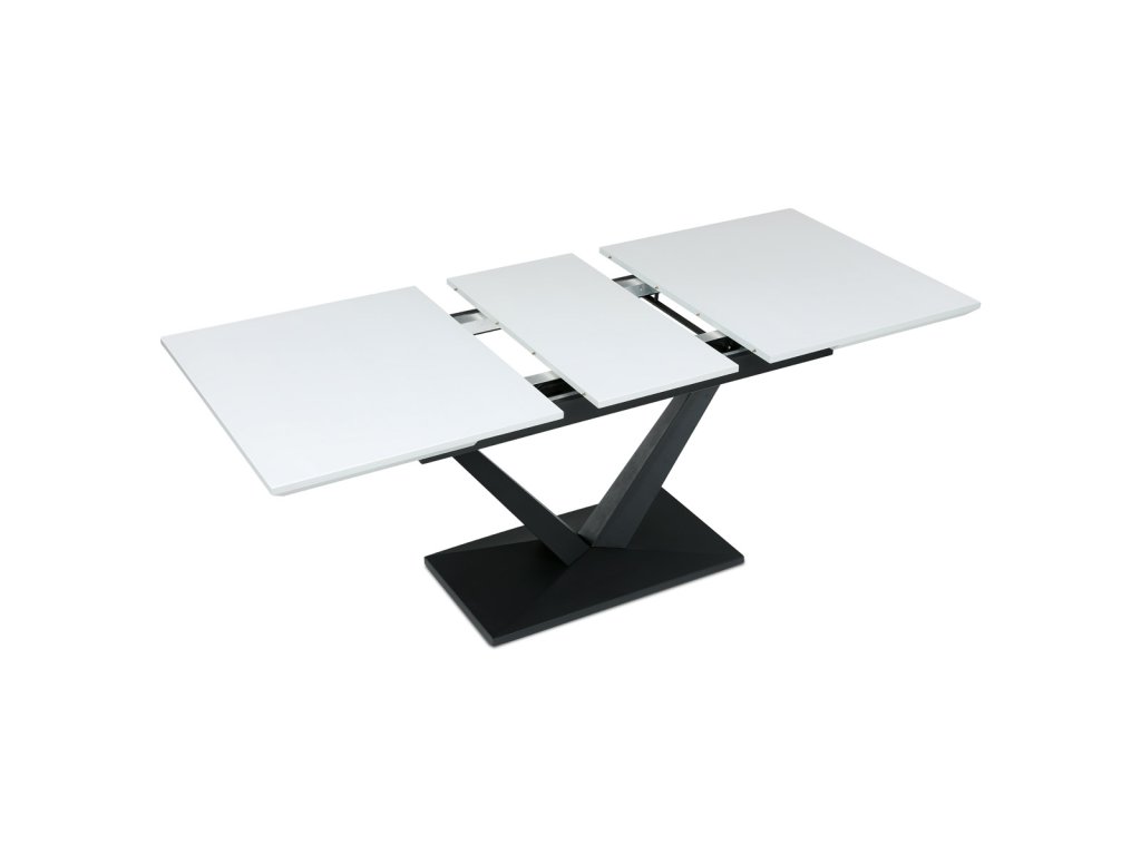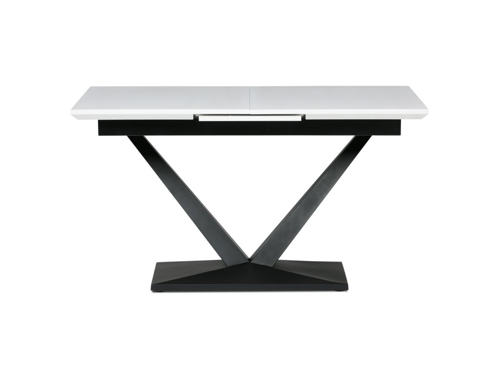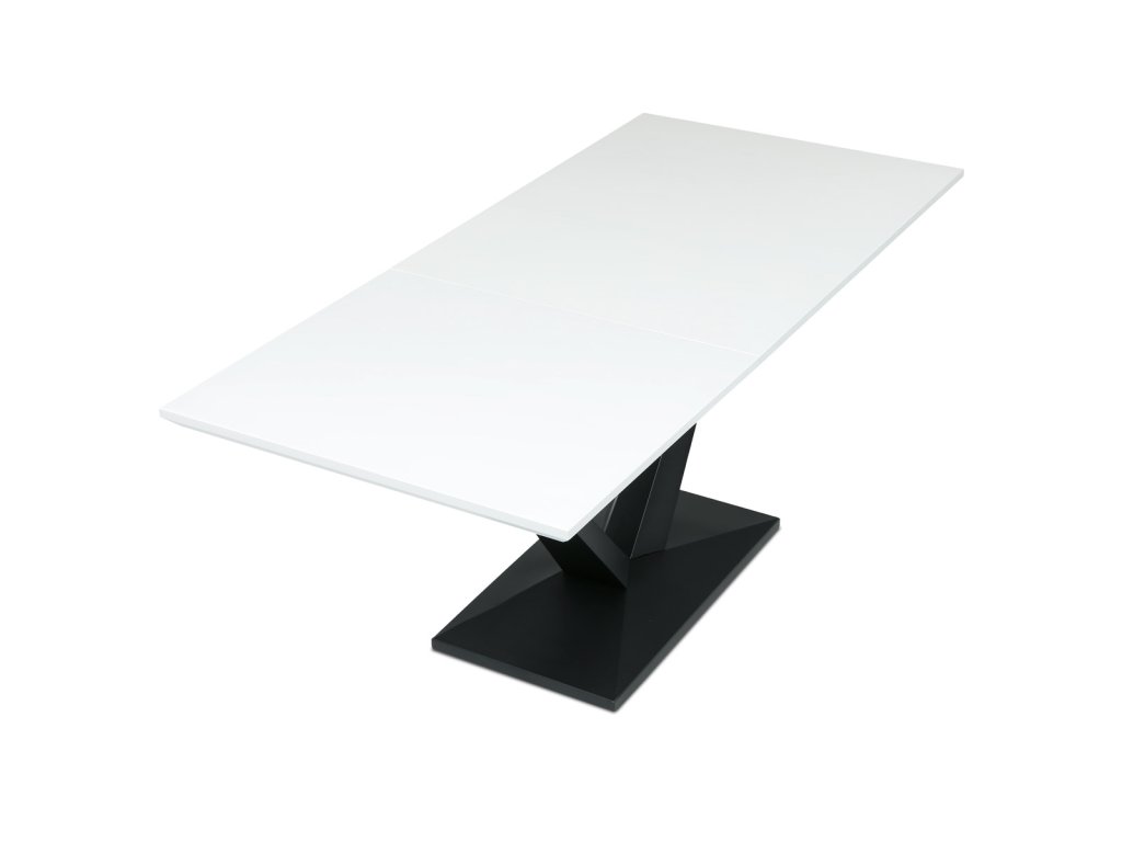 Rozkládací jídelní stůl Autronic HT-W1630 WT zaujme centrální nohou ve tvaru V, která zajišťuje stabilitu a přispívá k modernímu vzhledu. Bílá matná deska z MDF materiálu nabízí odolný a snadno udržovatelný povrch vhodný pro každodenní používání.