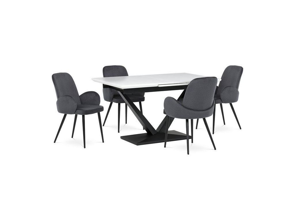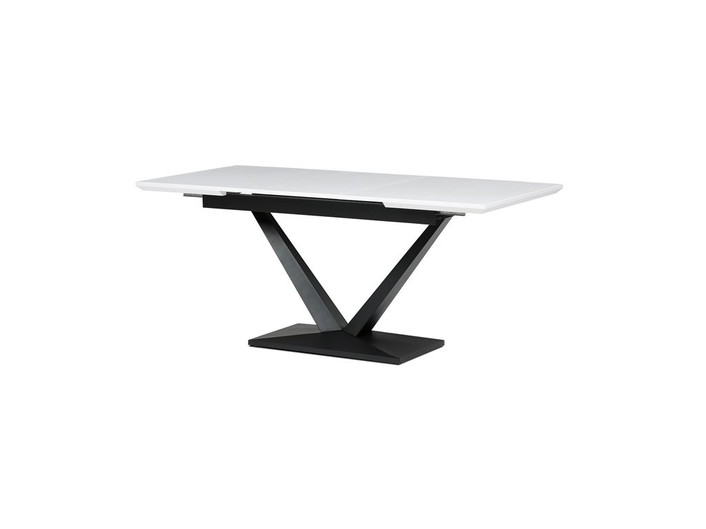 Rozkládací jídelní stůl Autronic HT-W1630 WT zaujme centrální nohou ve tvaru V, která zajišťuje stabilitu a přispívá k modernímu vzhledu. Bílá matná deska z MDF materiálu nabízí odolný a snadno udržovatelný povrch vhodný pro každodenní používání.