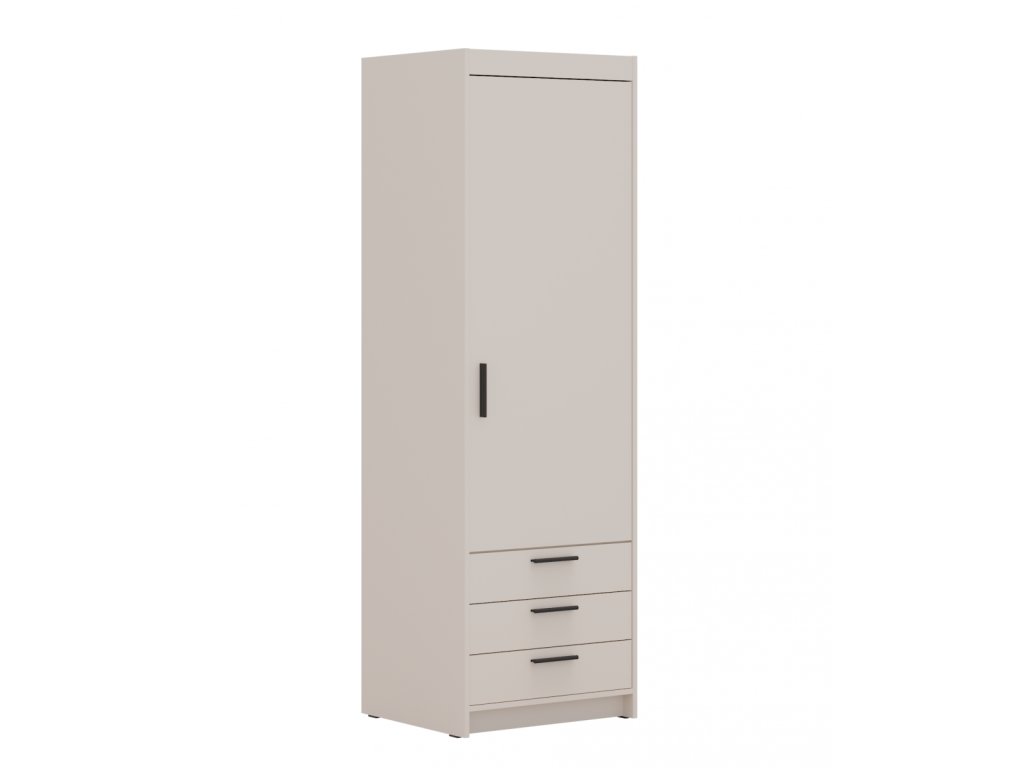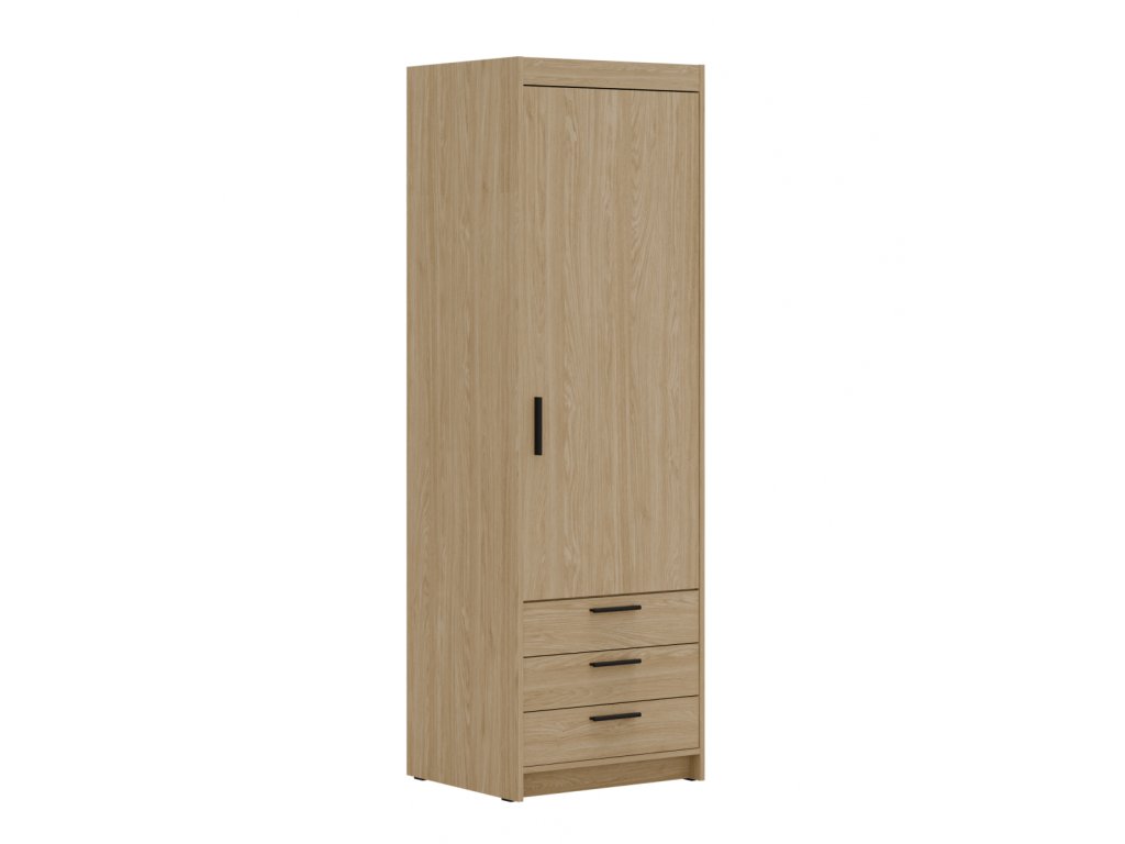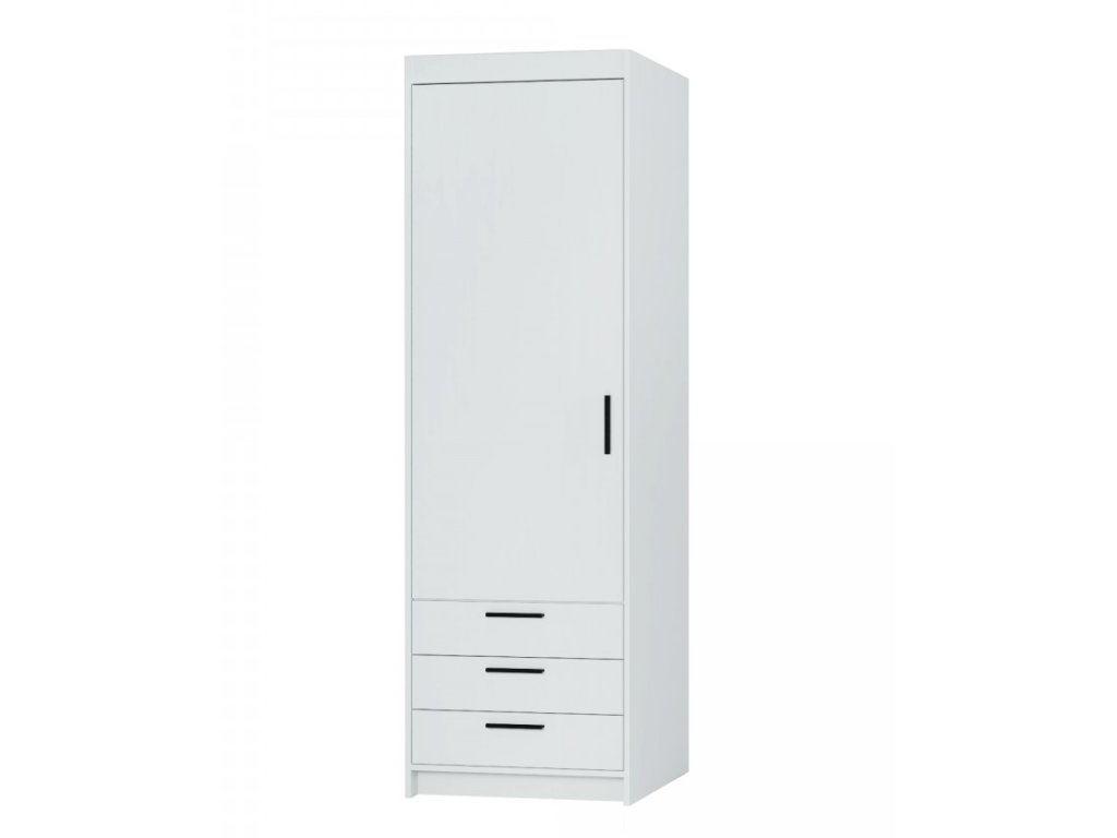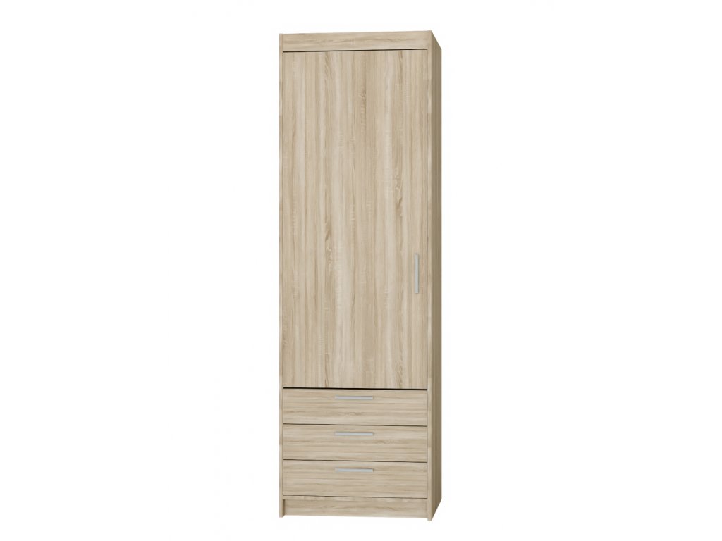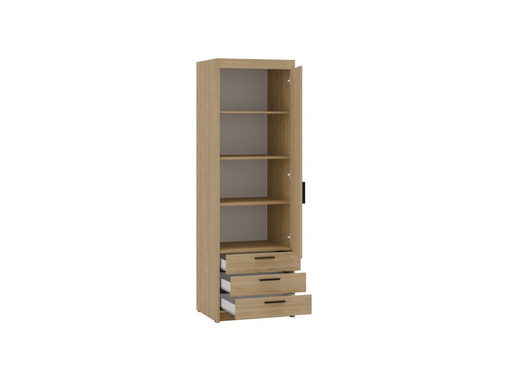 Šatní skříň Enja 1D3S je praktickým řešením úložného prostoru i do menších místností. Díky promyšlenému vnitřnímu uspořádání nabízí jedny dveře, tři police a tři zásuvky, které umožňují přehledné uložení oblečení, prádla i dalších domácích potřeb.