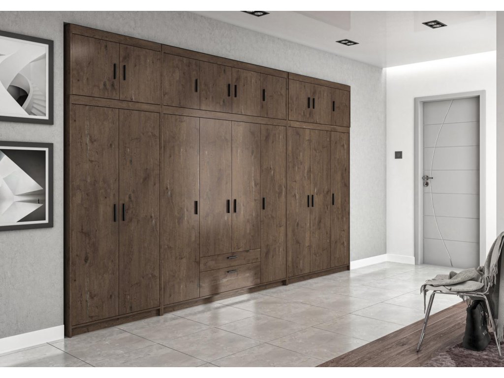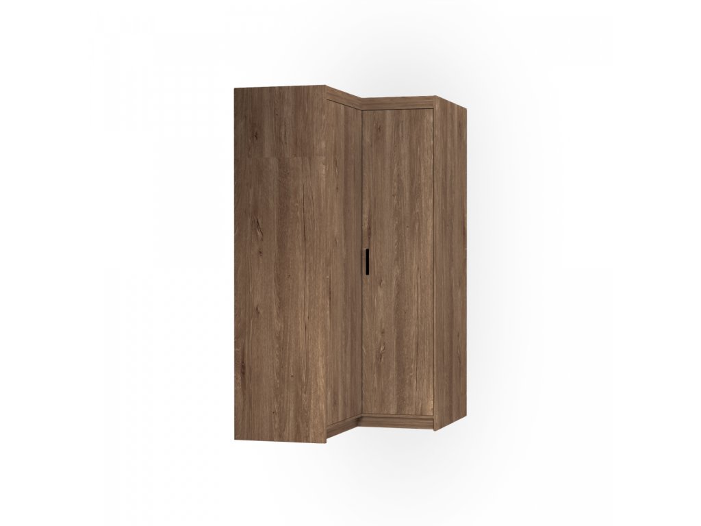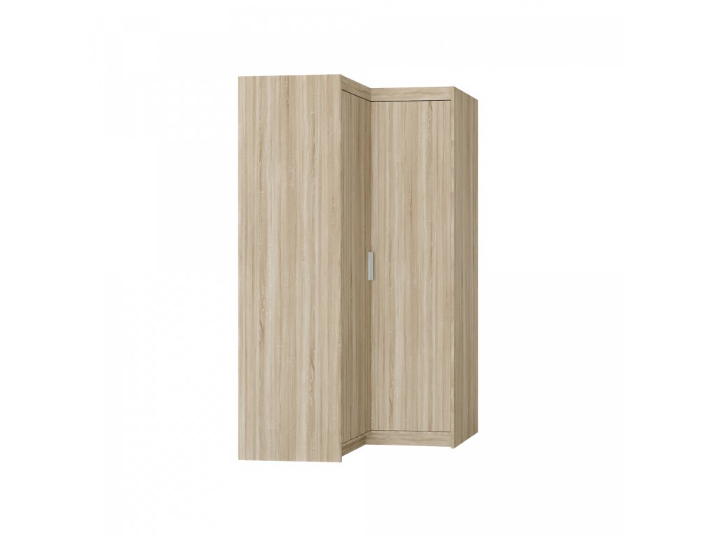 Rohová šatní skříň Enja je vyrobena z kvalitního lamina tl.15 mm, které je odolné a snadné na údržbu. Vnitřní uspořádání skříně je praktické a poskytuje dostatek úložného prostoru. Své uplatnění najde v ložnici, předsíni i v dětském pokoji. Ke skříni lze dokoupit nádstavec. Skříň je dodávaná v demontu a nabízíme ji ve několika barevných provedeních. Součástí balení je montážní plánek včetně všech potřebných spojovacích materiálů.